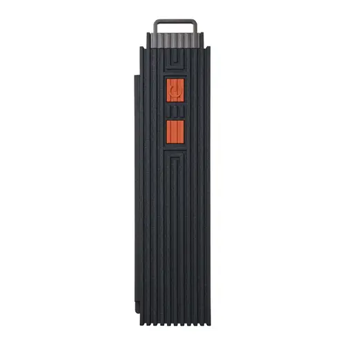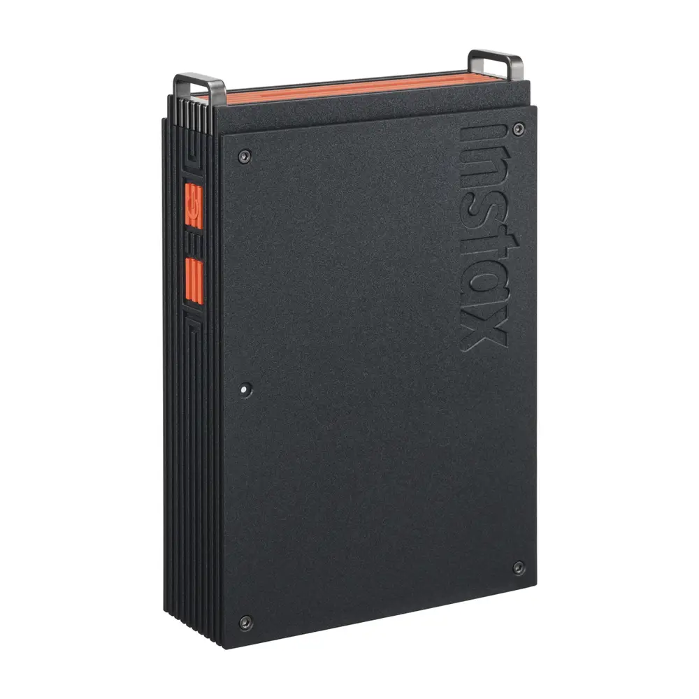 Das Design des instax mini Link+ setzt mit tiefem Schwarz, orangefarbenem Akzent und robustem Metall-Strap-Hook ein klares ästhetisches Statement und richtet sich an eine designaffine, kreative Zielgruppe.