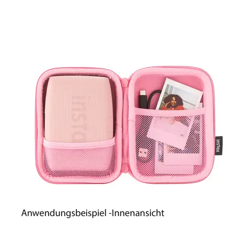 Hartschalen-Tasche zur Aufbewahrung des Sofortbild-Druckers, USB-C-Ladekabel und der Sofortbilder.