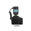 Der Controller wird auf dem Blitzschuh der Kamera befestigt. Der mit Kabel an dem Controller verbundene Ringblitz wird wiederum mit dem entsprechenden Adapterring am Objektiv der Kamera befestigt.