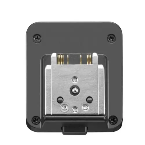 Der Blitzschuhadapter ermöglicht eine Neigung von 0 bis 90° sowohl für direktes als auch für indirektes Blitzlicht. Seine Höhe gewährleistet die Kompatibilität mit Objektiven und sorgt gleichzeitig für klare Bildränder.