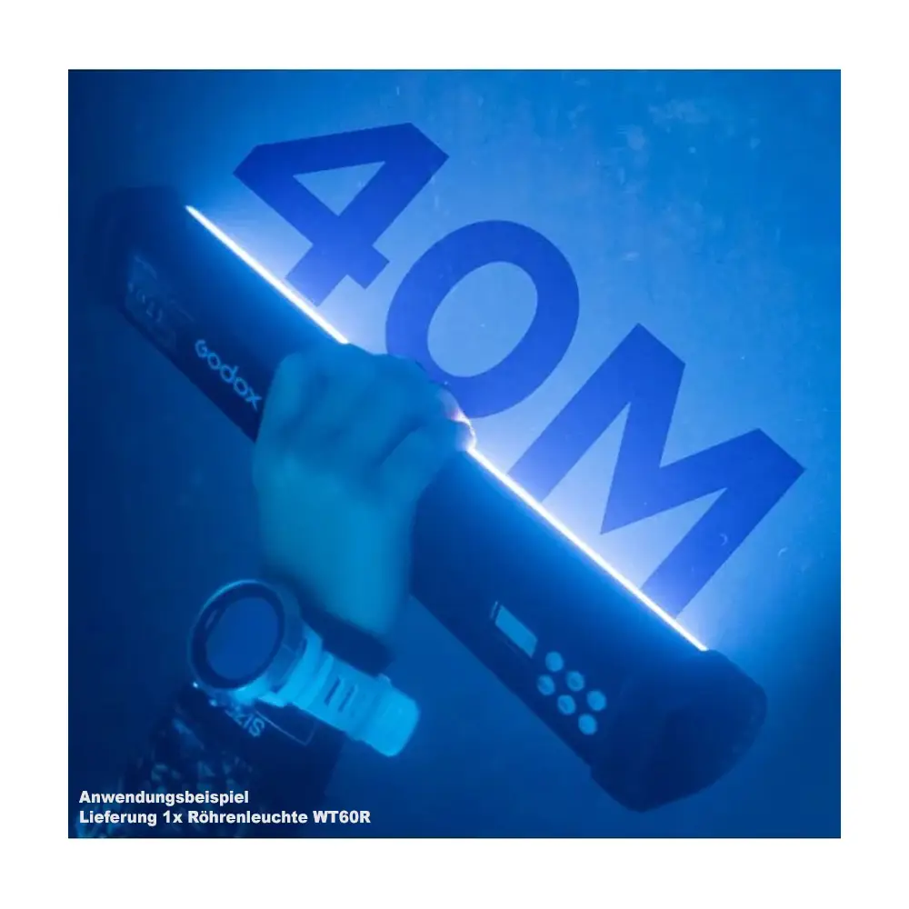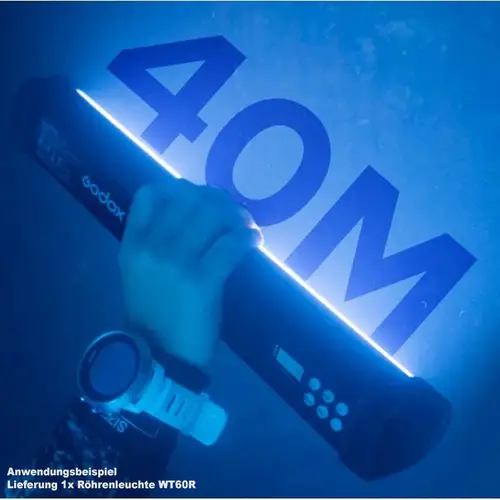 Die Leuchte kombiniert beständige Leistung mit einfacher Handhabung. Diese vielseitige röhrenförmige Leuchte hat eine Tauchtiefe von 40 Metern und bietet Beleuchtung aus verschiedenen Winkeln. Das Modell WT60R ist 60 cm lang und leuchtet die gesamte RGB-Farbpalette aus.