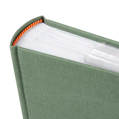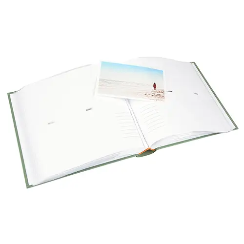Auf dem Memostreifen im Inneren lassen sich Notizen zu jedem Bild anbringen. Die Ausstanzung auf der Vorderseite ermöglicht zudem, das Cover mit wenigen Handgriffen zu personalisieren.