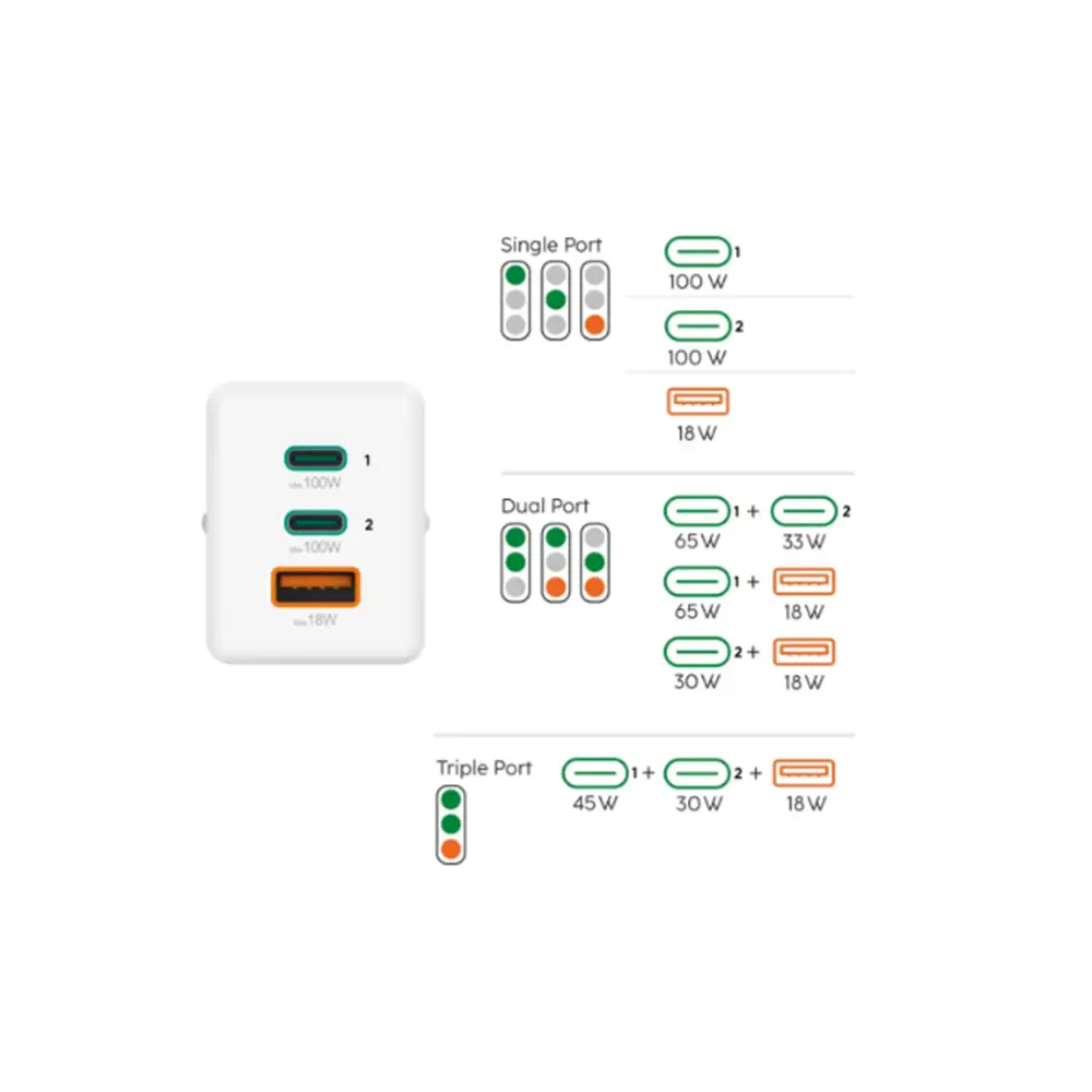 Produktmerkmale• Das Ladegerät für jede Lage – immer volle Power• Energie für drei: Schnellladegerät mit drei Ports• Zeit sparen – schnell laden über USB• Klein und kompakt: Perfekter Lader für unterwegs• Top-Leistung dank GaN-Technologie• Sicheres Aufladen ohne Sorgen• Fast Charge• Komponenten aus Galliumnitrid (GaN)• Für viele Geräte geeignet• Unterstützt Power-Delivery- und Qualcomm Quick Charge 2.0/3.0• Akkuschonendes Laden• Automatische Geräteerkennung• Intelligenter Chipsatz für sicheres Laden: Überlast-, Überstrom- und Kurzschluss-Schutz, IC mit Temperaturschutz• Breite 3,4cmx Höhe 4,4cmx Tiefe 7,6cm