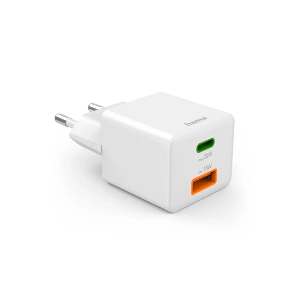 Hama 20W Schnellladegerät, 1x USB-C PD, 1x USB-A QC, Mini Ladegerät, weiß
