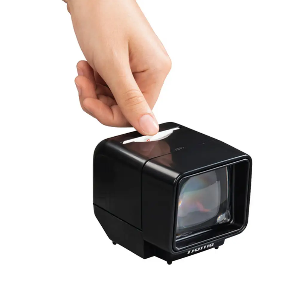 • einfaches und schnelles Betrachten von Dias durch eine vergrößerte und direkte Ansicht