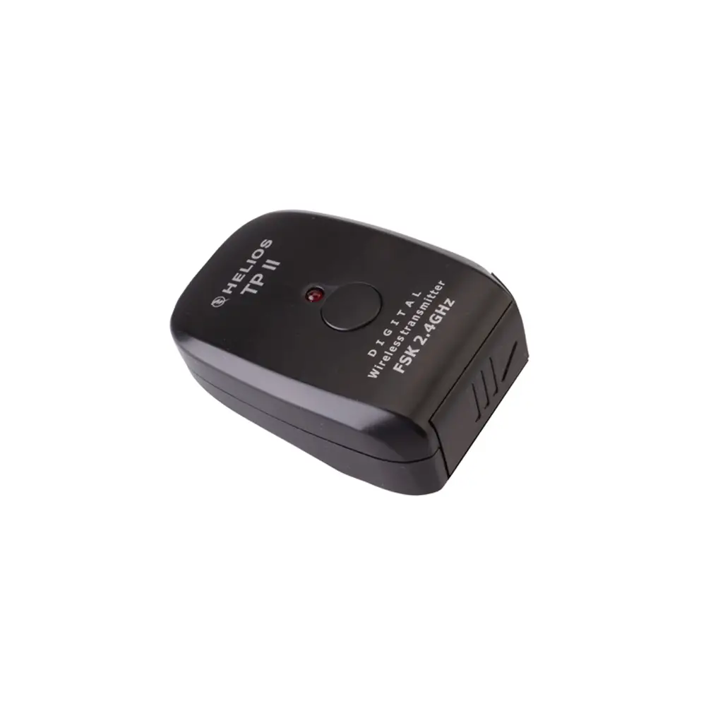 Die Studioblitzgeräte der Helios E- und PII-Serie besitzen einen eingebauten 2,4 GHz Funkempfänger mit 16 Kanälen. Somit können diese Modelle direkt mit diesem Auslöser angesteuert werden. Die Auslösung erfolgt im Normalfall direkt über den Mittenkontakt der Kamera. Es liegt dem Funkauslöser aber auch ein Kabel zum Anschluss an die Blitzbuchse der Kamera bei.