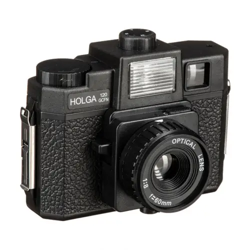 Die Holga Kamera wurde ursprünglich der chinesischen Öffentlichkeit im Jahr 1982 als preiswerte Kamera für den täglichen Gebrauch eingeführt. Kurz nach seiner Einführung wurde es zu einem künstlerischen Phänomen. Die Verwendung der Holga ist eine Übung, die sich frei von der Abhängigkeit von Technologie, Präzision und Kontrolle macht.Die leichte Weichheit der Bilder, Vignettierung und zufälliger Lichtaustritt erzeugen traumhafte, einzigartige Bilder. Die aktuelle Holga 120N ist der originalen Holga Kamera nachempfunden und verfügt jetzt über eine echte Glas Lise. • 2 Filmmasken für 6x6 und 4,5x6• Verschlußzeiten (N) normal 1/100 Sec (B) bulb hält Verschuß offen• Blende SUNNY F11, Blende SHADE/FLASK F8• Standard 1/4 Zoll Stativgewinde• Für 120er Mittelformat Rollfilm