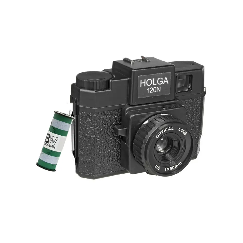 Die Holga Kamera wurde ursprünglich der chinesischen Öffentlichkeit im Jahr 1982 als preiswerte Kamera für den täglichen Gebrauch eingeführt. Kurz nach seiner Einführung wurde es zu einem künstlerischen Phänomen. Die Verwendung der Holga ist eine Übung, die sich frei von der Abhängigkeit von Technologie, Präzision und Kontrolle macht.Die leichte Weichheit der Bilder, Vignettierung und zufälliger Lichtaustritt erzeugen traumhafte, einzigartige Bilder. Die aktuelle Holga 120N ist der originalen Holga Kamera nachempfunden und verfügt jetzt über eine echte Glas Lise. • 2 Filmmasken für 6x6 und 4,5x6• Verschlußzeiten (N) normal 1/100 Sec (B) bulb hält Verschuß offen• Blende SUNNY F11, Blende SHADE/FLASK F8• Standard 1/4 Zoll Stativgewinde• Für 120er Mittelformat Rollfilm