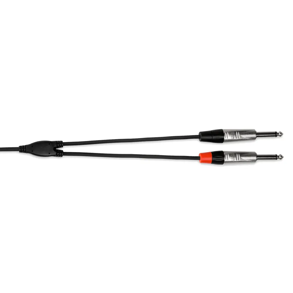 Dieses Kabel dient zum Anschließen eines Audiogeräts mit einem Mini-Stereo-Telefonausgang an ein Pro-Audio-Gerät mit unsymmetrischen Telefoneingängen. Es ist ideal zum Anschließen eines tragbaren Mediaplayers, Laptops oder eines ähnlichen Geräts an ein Mischpult.