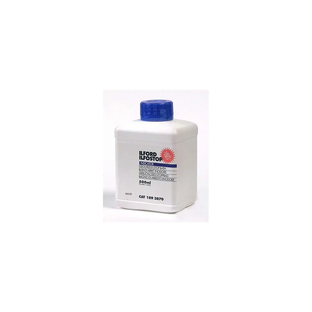 Ilford Ilfostop ist ein gerucharmes Indicator-Stoppbad, welches den Entwicklungsprozess sofort beendet, für Filme und Papiere.