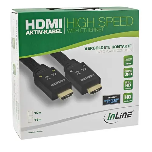 Produktmerkmale• Vergoldete Kontakte und Schelle• Hochdichte Drei-Schicht-Abschirmung für beste Qualität• Twisted-Pair Kabel-Aufbau für beste Signalqualität• Überträgt HD Video- und reine Audio-Signale• Unterdrückt EMV-Interferenzen, machen das Bild lebendig• HDMI Ethernet Channel: Fügt High-Speed-Vernetzung zu einer HDMI-Verbindung hinzu, so dass Benutzer den vollen Nutzen aus ihren IP-Geräten verwenden können, ohne dass separate Netzwerk-Kabel benötigt werden (sofern die Geräte HDMI with Ethernet unterstützen)• Audio Return Channel (ARC): Ermöglicht einem über HDMI angeschlossenen TV mit eingebauten TV-Tuner die Audio-Daten per "upstream" an eine Surround-Audio-Anlage zu senden, wodurch ein separates Audiokabel nicht mehr benötigt wird• 3D über HDMI: Definiert Ein- und Ausgangs-Protokolle für die großen 3D-Video-Formate, ebnet den Weg für echte 3D-Spiele und 3D-Heimkino-Anwendungen.• 4K x 2K Video Unterstützung: Ermöglicht Video-Auflösungen weit über 1080p, Unterstützung von Displays der nächsten Generation (UHD 2.160p).• Weitere Farbräume: Unterstützung für zusätzliche Farbmodelle, die in der digitalen Fotografie und Computergrafik verwendet werden.• Für folgende Anwendungen: HDTV, PC/Notebook, XBOX, Playstation, Blu-ray-DVD / HD-DVD, DC/DV, Beamer• Abwärtskompatibel zu allen bisherigen HDMI Kabeln• Mit HDMI Ethernet Audio Control (HEAC) und 3D Unterstützung• Auflösungen bis 4K@50/60Hz, (2160p), 4-fach höhere Auflösung als FullHD• Bis zu 32 Audiokanäle für ein multi-dimensionales eindrucksvolles Hörerlebnis• Bis zu 1536kHz Audio-Sample-Frequenz für höchste Klangtreue• Unterstützt simultane Lieferung von Dual-Video-Streams, um Inhalte für mehrere Benutzer auf dem gleichen Bildschirm darzustellen• Ebenso wird die gleichzeitige Übertragung von Mehrkanal-Audio an mehrere Benutzer (bis zu 4) unterstützt• Unterstützung Breitbild Displays wie z. B. das 21:9 Format• Dynamische Synchronisation von Video-und Audio-Streams• CEC-Kommandos zur erweiterten Steuerung und Kontrolle der Unterhaltungselektronik-Geräte wird unterstützt• Schwarzer Nylon Geflecht Mantel, schwarze Stecker• Vergossene Stecker• HDMI Stecker A an HDMI Stecker A