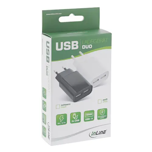BezeichnungInLine USB Ladegerät DUO sw, Netzteil 2-fach, Stromadapter 100-240V zu 5V/2,1A
