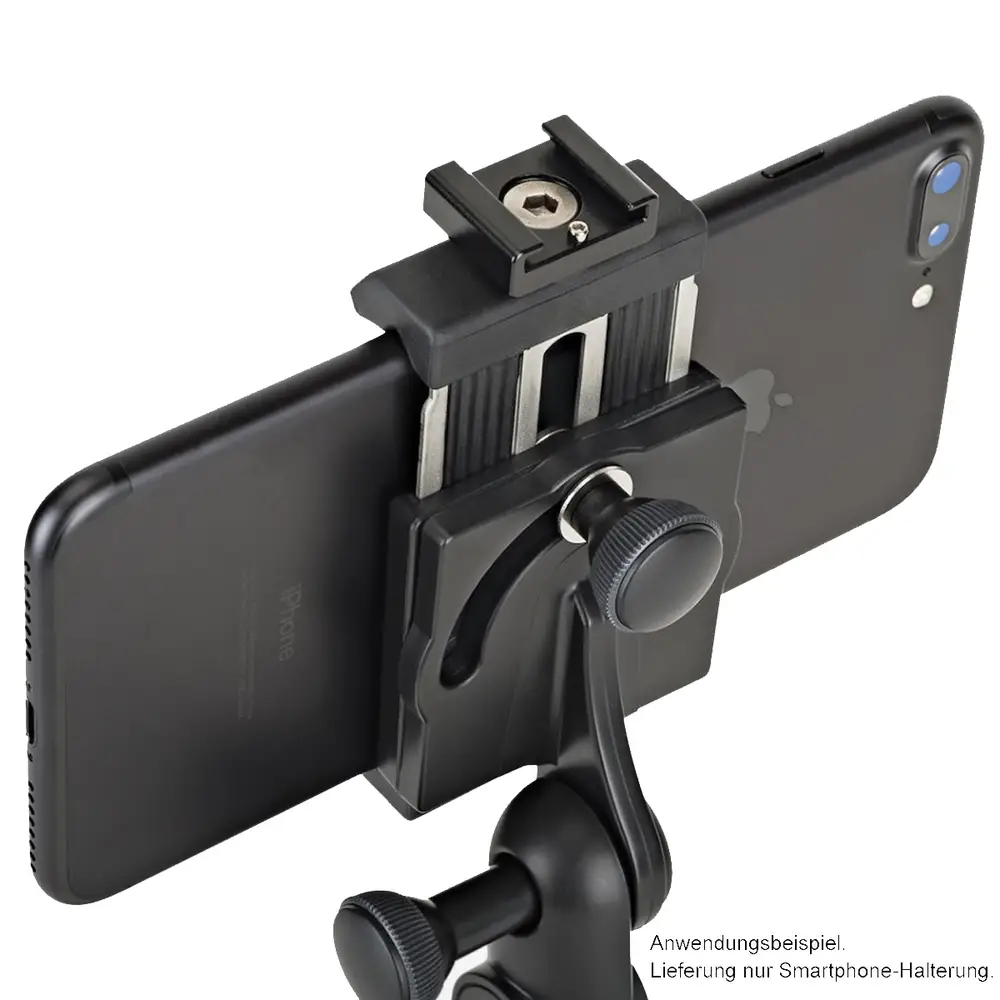 Geräte: Blitz und LED, Mikrofon (Cold Shoe), Smartphones mit einer Breite von 56 bis 91 mm.