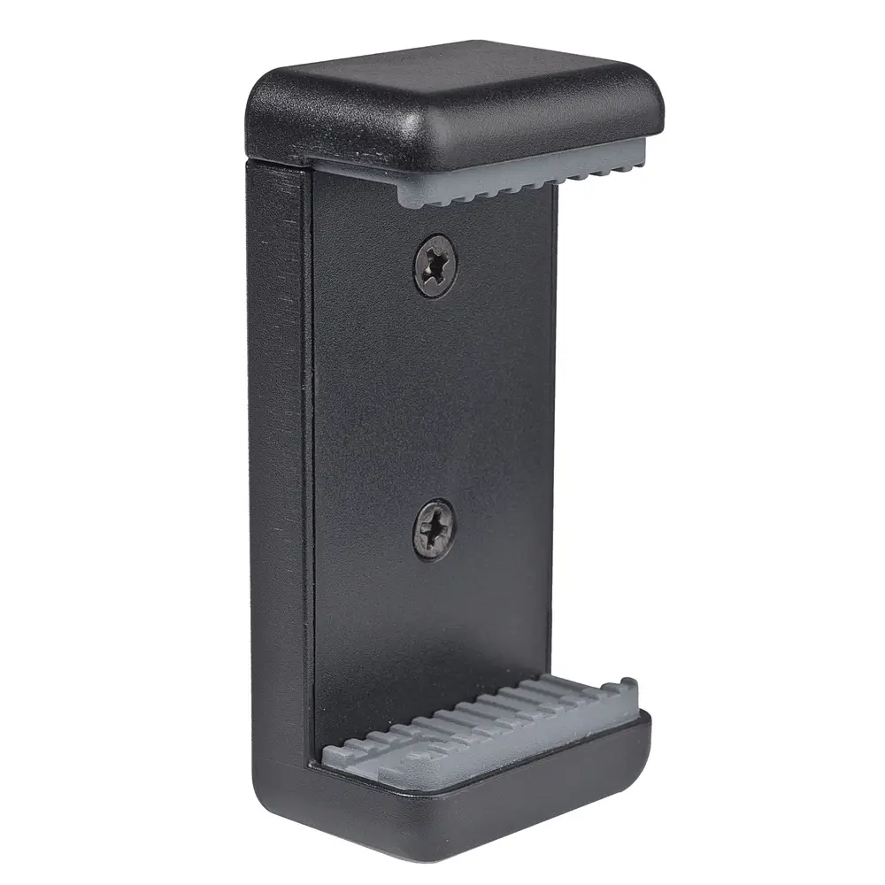Zur Befestigung eines Smartphones auf einem Stativ bzw. an einer Halterung mit 1/4"-Anschlussgewinde (z.B. Tisch-, Klemm-, Saug-, Einbein- und Dreibeinstativ, Handstativ Quik Pod sowie Kugelkopf) oder zur Anbringung von weiterem Zubehör am Smartphone (z.B. Handgriff). Gummierte Schnellklemme mit Spannweite 55 – 90 mm. Eine Klemmbacke mit Aussparung für Bedientaste. Drei Stativgewinde 1/4" für universelle Anwendung: Hoch- und Querformat, Foto-/Video-Aufnahmen und -Betrachtung, Videotelefonie und Smartphone-Bedienung.