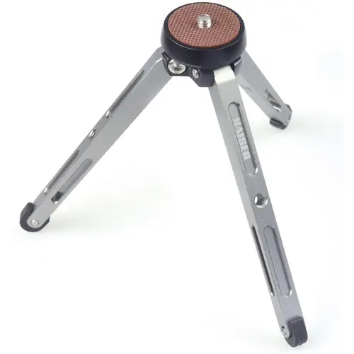 Beine aus hochbelastbarem Aircraft-Aluminium. Anstellwinkel jedes Beines separat einstellbar. Alle Beine mit 1/4"-Gewindebohrung für weiteres Zubehör (Leuchte, Kugelneiger, usw.). Rutschfeste Gummifüße.