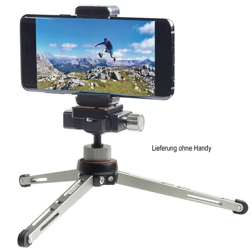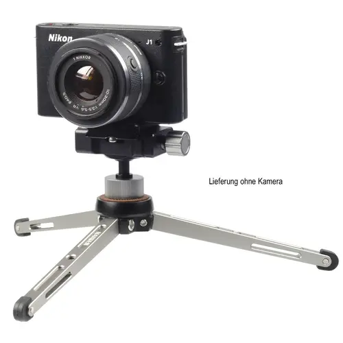 Höhe aufgestellt: ca. 9,8 – 19,2 cm Länge (zusammengelegt): ca. 20,7 cmGewicht: ca. 277 gBelastbarkeit: max. 4 kg (zentrisch)Mini-Stativ „solid 3+“:Robustes Dreibein-Mini-Stativ aus hochwertiger Aluminiumlegierung mit eloxierter Oberfläche. Hohe Tragkraft: belastbar bis zu 6 kg.Gummierter Auflageteller mit 1/4“-Anschlussgewinde.Beine aus hochbelastbarem Aircraft-Aluminium. Anstellwinkel jedes Beines separat einstellbar. Alle Beine mit 1/4"-Gewindebohrung für weiteres Zubehör (Leuchte, Kugelneiger, usw.). Rutschfeste Gummifüße.Kompakt zusammenlegbar.Kugelneiger „2fix“:Stabiler Kugelneiger mit Schnellkupplung und zwei Befestigungsalternativen.Schnellwechselsystem mit Schwalbenschwanzklemmung und Schraubfixierung (Arca-Swiss kompatibel). Schnellwechselplatte mit rutschfester Auflage, 1/4"-Bügelschraube mit Münzschlitz und abnehmbarer Durchrutschsicherung.Befestigung auf Stativen und Halterungen mit 1/4"-Anschlussgewinde und an Gewindebohrungen 1/4".Robuste, langlebige Aluminiumlegierung.Wasserwaage für horizontale Ausrichtung.Für Hochformat-Aufnahmen neigbar bis 90°. Klemmhebel für Kugel, Fixierschraube für Schnellwechselplatte.Inkl. abnehmbarem Gewindeadapter mit Gewindebohrungen 1/4".