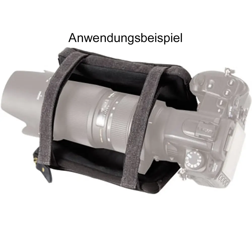 Die robuste und rutschsichere Kunststoffunterlage ist abwaschbar, der weiche, velourslederartige Stoff auf der Oberseite schont die Kamera. Die Innenseite ist mit Nylonfutter ausgekleidet, der Reißverschluss sichert das Füllmaterial zuverlässig. Als Füllung können allerlei Dinge verwendet werden. Besonders gut geeignet sind Reis in praktischen Kochbeuteln, Gel-Kühlkissen, aber auch Bohnen, Linsen oder unterwegs aufgesammelte Steinchen. So gefüllt eignet sich das Kamerakissen als verwackelsichere Kameraauflage auf Felsen, einer Mauer, der Fensterbank, dem Autofenster etc. Durch die vier Klettbänder kann es auch an einem Ast, Geländer oder Zaun befestigt werden. Wird das Kissen als verwackelsichere Unterlage für Kameras mit Teleobjektiven verwendet, dann lässt es sich mit den Klettbändern auch direkt am Objektiv sichern. Ohne Füllung hat man hier aber auch ein überaus praktisches Zubehörtäschchen zur Hand, in das man Filter, Reinigungsutensilien, Speicherkarten und vieles mehr gut aufgeräumt und geschützt in der Fototasche oder dem Rucksack verstauen kann. Mit seiner Größe von 260x210x30mm, je nach Füllung, ist das kalahari Kamerakissen ein praktisches und sinnvolles Zubehör für jede Ausrüstung.