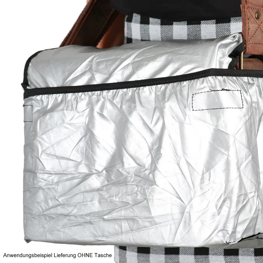 • Mit diesem Regenschutz bleibt Ihre wertvolle Kameraausrüstung in der Fototasche auch bei schlechter Witterung optimal geschützt. Einfach den Regenschutz über die Tasche ziehen und mit Klett schließen.• Durch die praktische Wendemöglichkeit erzielt man mit der silbernen 'Heat-Protect'-Beschichtung einen zusätzlichen Schutz vor heftiger Sonneneinstrahlung im Sommer.• Der Überzug ist universell passend für viele Taschen mit den Abmessungen bis B30 x H23 x T15cm, wie z.B. kalahari MAKOBA M-21, KAAMA LS-23 und LS-31.• Die Lieferung erfolgt im kleinen Transportbeutel mit Karabinerhaken zum Anhängen an die Tasche.