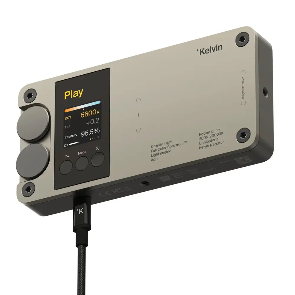 Die Kelvin Play ist die weltweit erste Kameraleuchte mit RGBACL LEDs. Sie bietet höchste Farbreinheit und deckt das gesamte Farbspektrum ab. Mit nur 350 Gramm ist sie trotz des für Kelvin typischen robusten Gehäuses sehr leicht und ideal für unterwegs. Wie auch die anderen Modelle wird sie in Norwegen entwickelt und gefertigt.