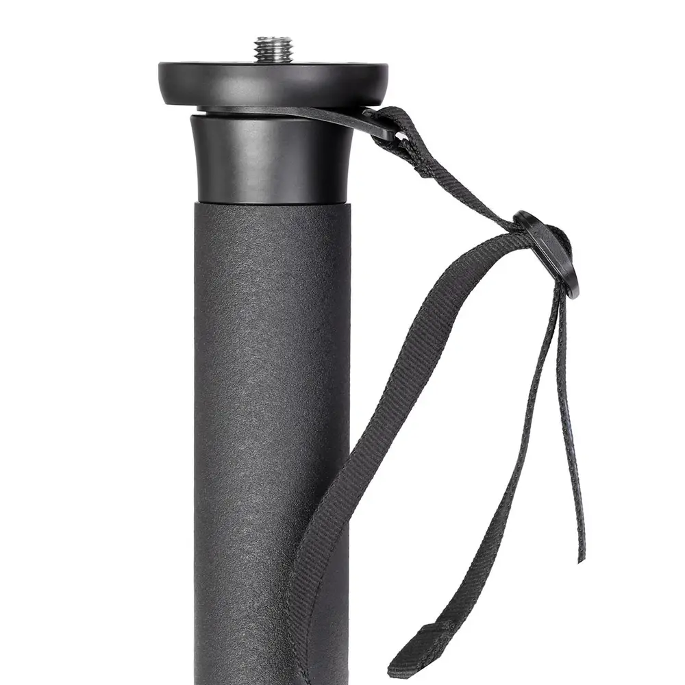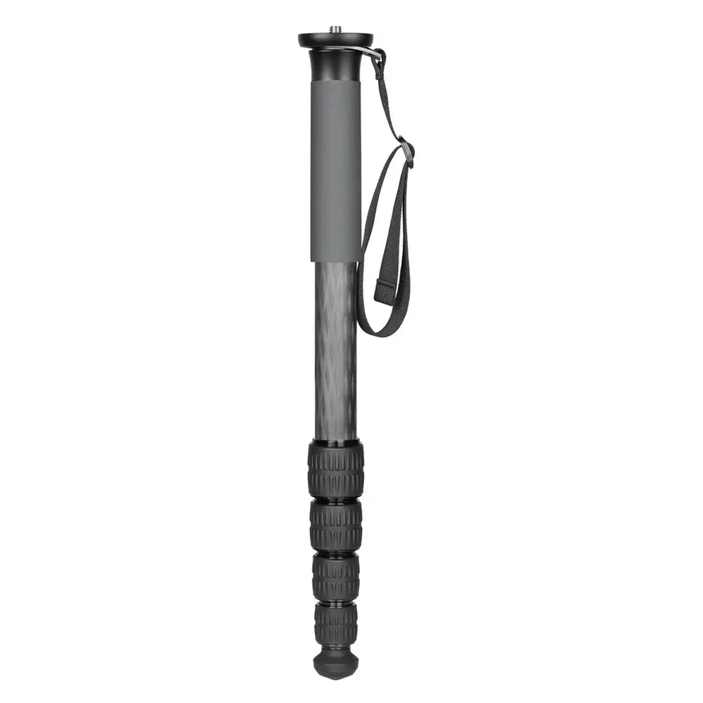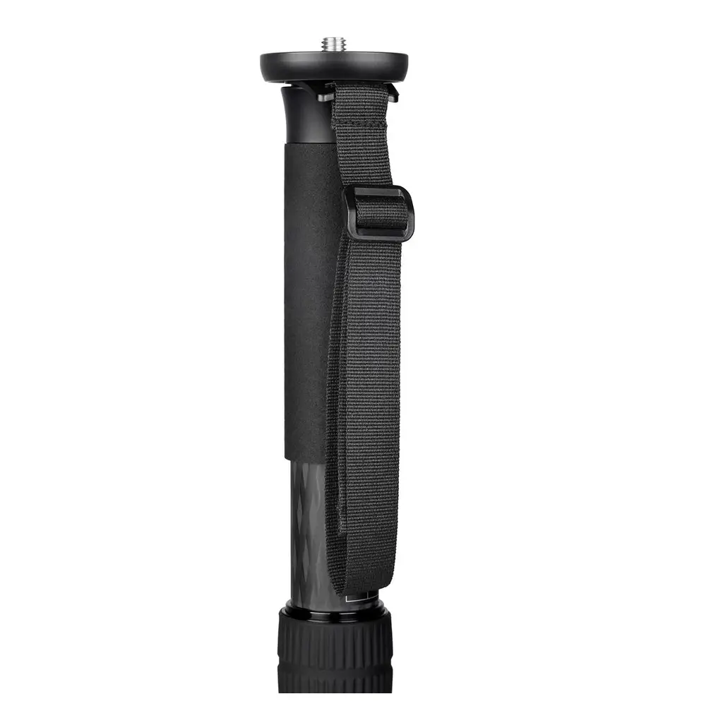 Weil auch das Packmaß mit 430 mm schön kurz bleibt, ist dieses Einbeinstativ rundherum ein idealer Begleiter für die Sport- und Action-Fotografie. Apropos, rundherum: die fünf runden Beinsegmente mit den Durchmessern 28, 25, 22, 19 und 17 mm sind dank Carbon nicht nur sehr leicht. Wegen der besonders präzisen Verarbeitung dieses exzellenten Werkstoffs lassen sie sich samtig weich bewegen und verdrehen sich auch ganz sicher nicht. Buchstäblich im Handumdrehen lassen sich die gummierten Drehverschlüsse lösen oder feststellen. Die Stativplatte krönt eine Kombischraube mit ¼“- und 3/8“-Gewinde. Natürlich könnte man vielerlei Köpfe daran festmachen.