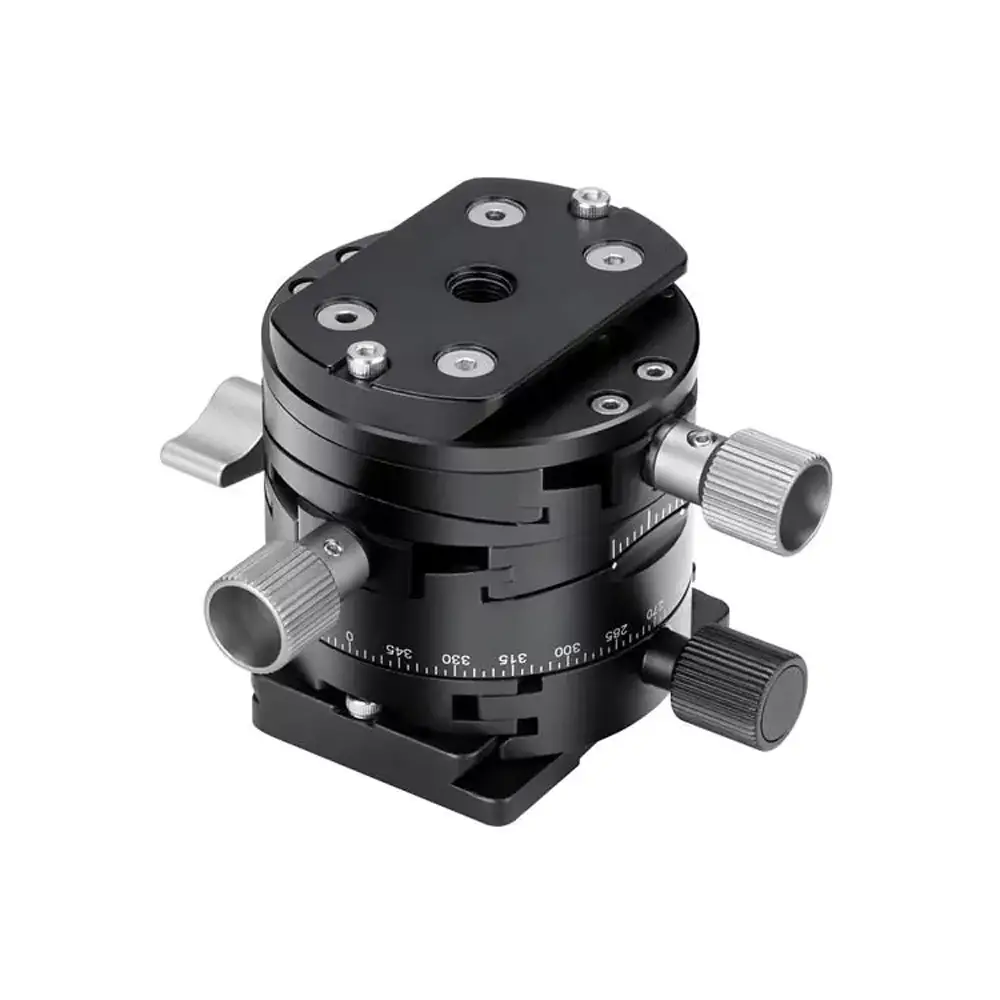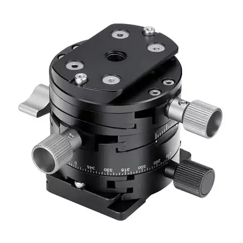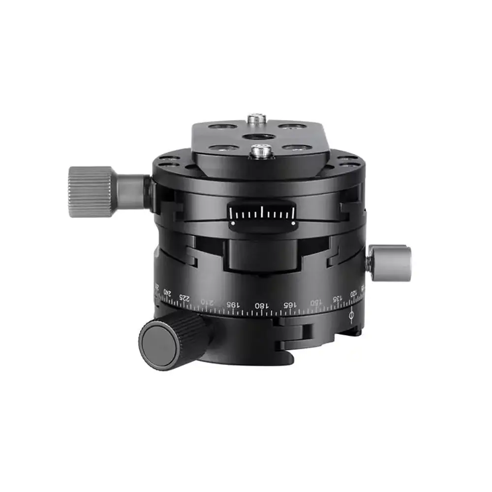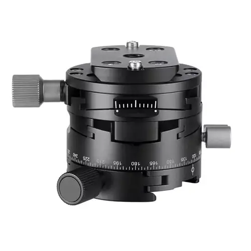 So eine Panoramaplatte ist eine ideale Hilfe, wenn es gilt, die Kamera genauestens zu positionieren. Die getriebeunterstützte, jederzeit leicht nachzukorrigierende Verstellung um plus/minus 10° in zwei Achsen und das 360°-Panorama lassen kaum Wünsche in puncto Feinjustierung offen. Zudem erleichtert eine lasergravierte Rundum-Skala das exakte Arbeiten mit diesem Gerät ebenso wie die eingebaute Wasserwaage (Dosenlibelle).