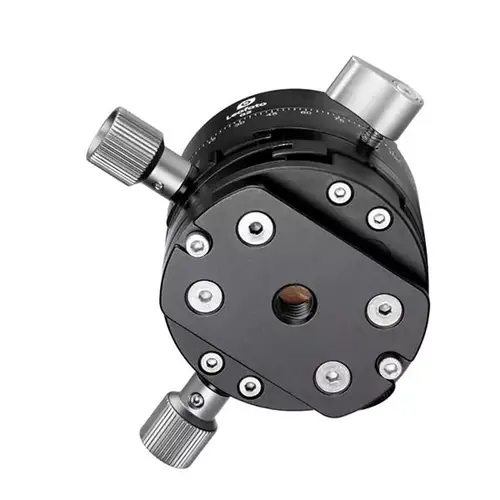 Der absolut griffige Hauptverriegelungsknauf ermöglicht es, Positionen schnell zu ändern und zu fixieren. Und ein dank der flachen Bauhöhe von 62 mm (bei einem Durchmesser von 60 mm) recht niedriger Schwerpunkt trägt dazu bei, Schwingungen ganz enorm zu reduzieren. Eine Arca-Swiss-kompatible NP-60 Stativplatte von Leofoto gehört zum Lieferumfang. Die 20 kg Tragkraft der G2 sind kein Pappenstiel, deshalb verfügt ihre Basis über ein sehr kräftiges 3/8”-Messinggewinde zur stabilen Verbindung der G2 Getriebe-Panoramaplatte mit einem passenden Kugelkopf. Dank präziser CNC-Fertigung aus hochstrapazierfähigem Flugzeugaluminium bleibt aber das Eigengewicht mit 360 g schön gering.