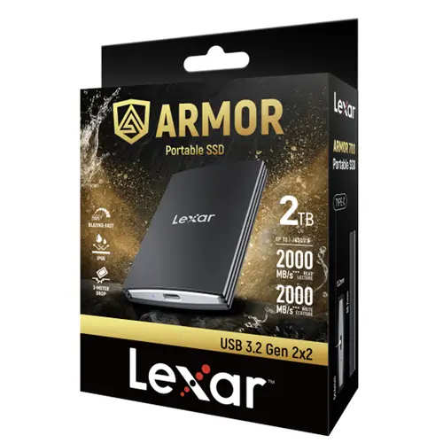 Die Lexar ARMOR 700 Portable SSD verfügt über eine der höchsten Schutzklassen in ihrer Produktklasse (IP66) und ist sowohl gegen das Eindringen von Wasser und Staub als auch gegen Stürze aus bis zu 3 Metern Höhe geschützt.2