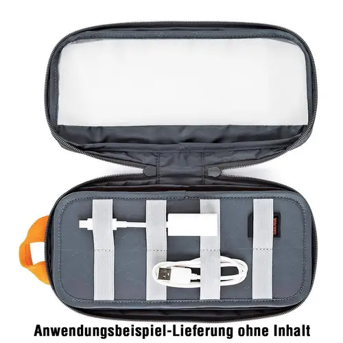 • Hergestellt aus 67 % recycelten Materialien• Passt für Netzteile, tragbare Festplatten, Akkus und Ladegeräte• 2-seitiges Organizer-Panel, elastische Gurte/gepolsterte Taschen• Sichern Sie kleine Gegenstände mit Gurt und Tasche am Boden• Doppelter 360°-Reißverschluss für einfachen Zugriff