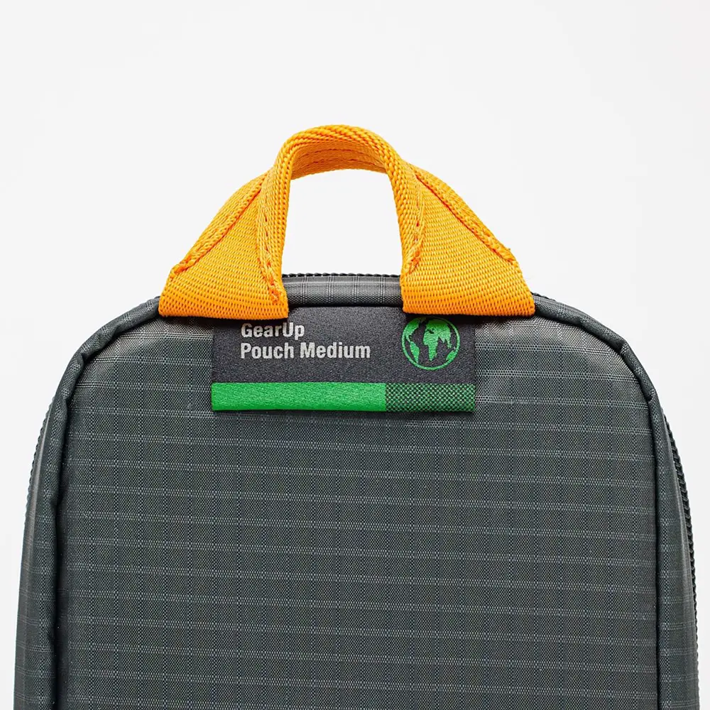 Das GearUp Case Medium Elektronik- und Reiseetui bietet optimalen Schutz für Kopfhörer, Kameras und anderes Gerätezubehör. Das abnehmbare Organizer-Panel mit zwei gepolsterten Fächern und einem elastischen Gurt bietet eine sichere Aufbewahrungsmöglichkeit. Perfekt für Reisen und Pendler! Die GearUp Pouch Medium ist Teil von Lowepros Engagement für Nachhaltigkeit im Rahmen des Green Line Projekts. Sie wurde aktualisiert und besteht nun zu 67 % aus recyceltem Material (einschließlich aller Stoffe, Gurtbänder, Einfassungen, Reißverschlussbänder, Kordeln und Netze), um die negativen Auswirkungen auf die Umwelt zu reduzieren. (Dieser Green Line Score wird in Anlehnung an den Standard GRI 301-2 als Prozentsatz des verwendeten recycelten Garns im Vergleich zum Gesamtgewicht des Garns gemessen.)