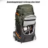 Mit dem integrierten und herausnehmbaren GearUp PRO XL Kameraeinsatz und dem speziellen Zubehörgurtsystem, das verschiedene Tragekonfigurationen ermöglicht, ist er für den Schutz der Fotoausrüstung konzipiert. Bietet genügend Stauraum für Mehrtageswanderungen, für Schlafsack, Zelt, Essensvorrat, Jacke, Trekkingstöcke, Trinksystem und Wasserflasche, etc. Das ActivLift Gurtsystem mit verstellbarer Torsolänge sorgt für eine bequeme Passform und Gewichtsverteilung für optimale Outdoor-Erkundungen.