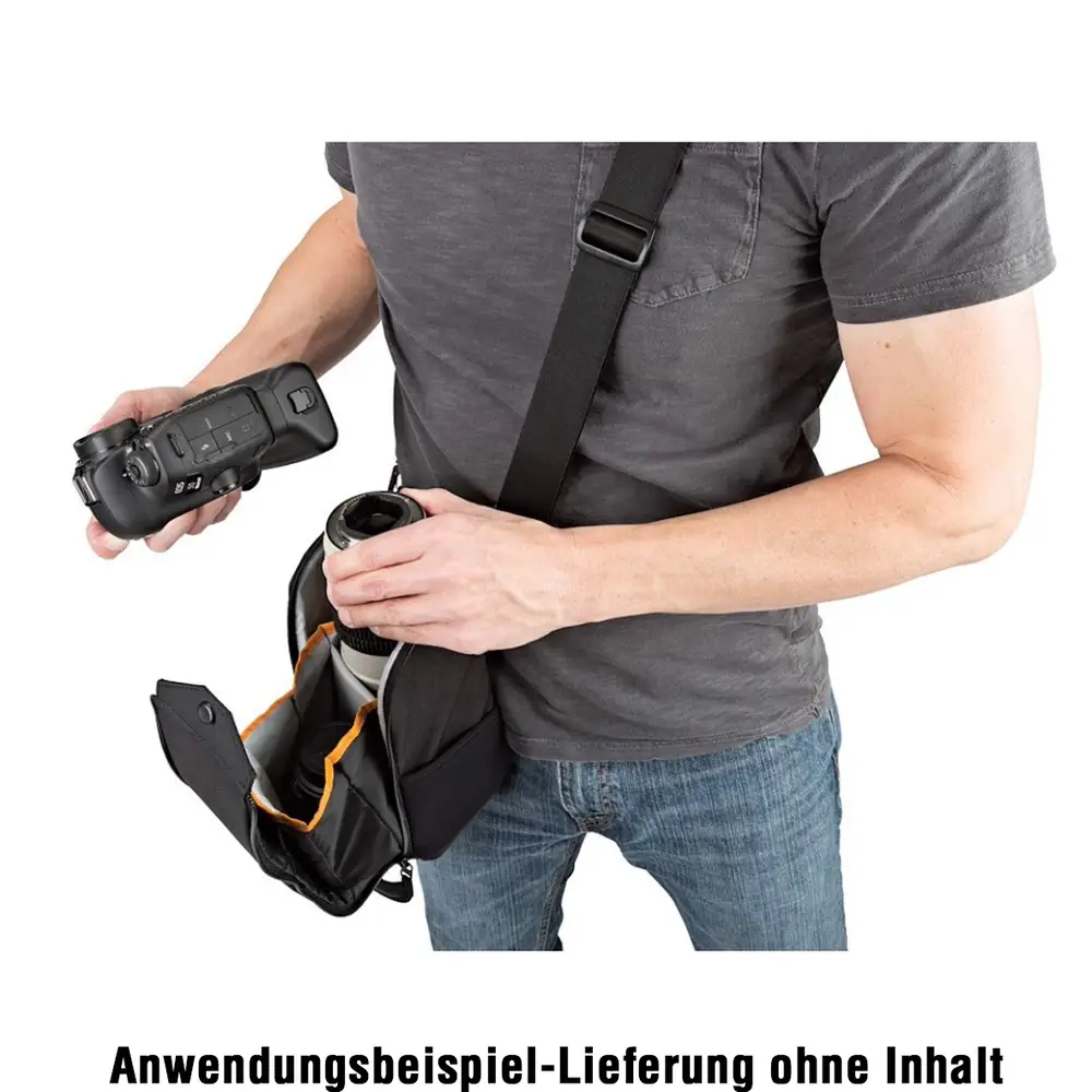 • Hält vorrübergehend 2 Objektive während des Objektivwechsels• Ergonomischer Haupthandgriff für leichte Einhandbedienung• Mit SlipLock an ProTactic-Rucksäcken oder -Gürteln zu befestigen• Enthält ein wasserabweisendes All Weather AW Cover• Abnehmbarer, verstellbarer Schultergurt