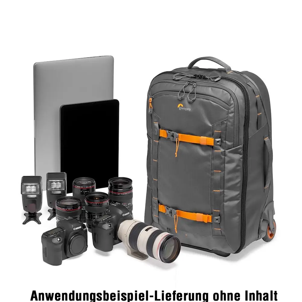 • Herausnehmbare Profi-Kameratasche eingebettet im Reise-Trolley