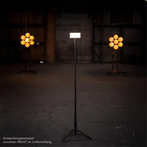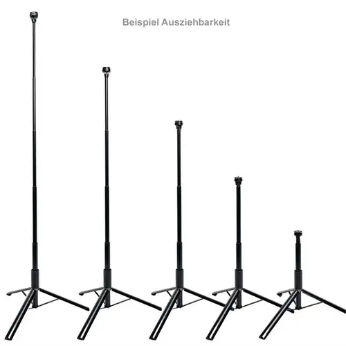 Zusammengeklappt ist das Stativ nur 35,5 cm lang und kann auf 152 cm (5 ft) ausgezogen werden. Dieses Lichtstativ hat einen um 180 Grad schwenkbaren Kopf mit 1/4"-Schraubbefestigung, um z. B. eine Lampe, eine Telefonhalterung oder anderes Zubehör mit 1/4"-Schraubenloch zu platzieren. Da der gummibeschichtete Kopf mit einem Federsystem ausgestattet ist, sitzt Ihr Zubehör fest an Ort und Stelle. Das Stativ kann maximal ca. 2,7 Kilo tragen. Eine Lampe ist nicht im Lieferumfang enthalten.