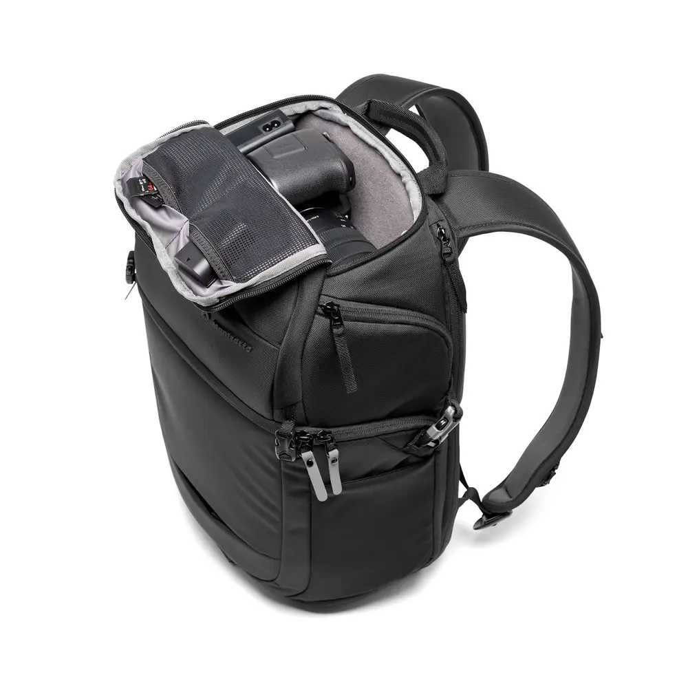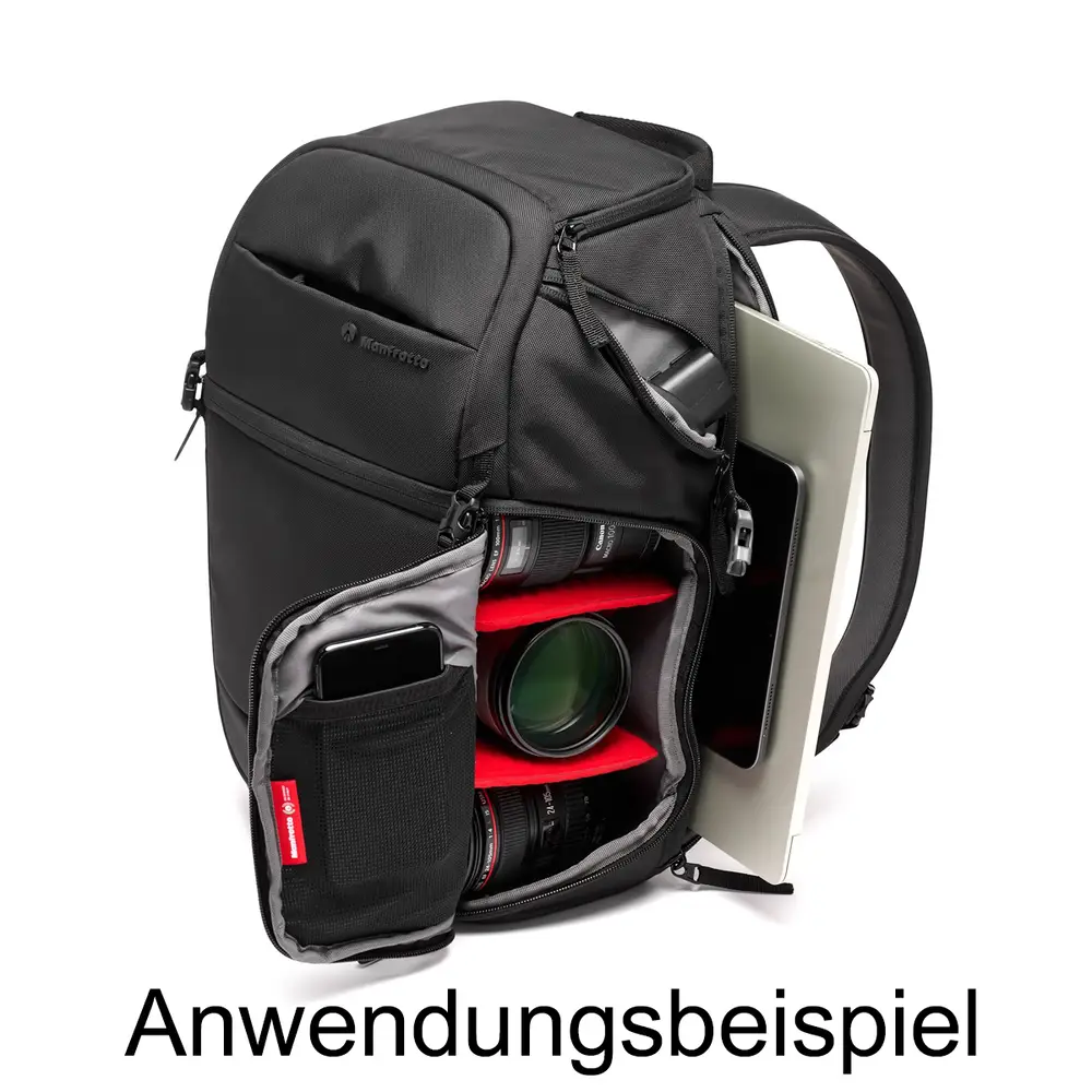 Alltagstauglicher Kamera- und Laptop-Rucksack für Fotoausrüstung und persönliche Dinge. Der Rucksack Advanced 3 von Manfrotto ist für DSLR- oder spiegellose CSC-Kameras mit Griff, plus Laptop ausgelegt. Das Modell Fast bietet separaten Stauraum für persönliche Dinge im oberen und für die Fotoausrüstung im unteren Fach, wobei die Fächer direkt und schnell über die Fronttasche zugänglich sind. Der großzügige Innenraum reicht für eine DSLR oder eine spiegellose CSC Kamera mit Griff mit bis zu fünf mittelgroßen Objektiven und Laptop Produktmerkmale • Material Polyester • Stativhalterung ja • für DSLR mit Griff; Stativ; Mirrorless with grip; Mobile Gimbal, 5 Objektive • langlebiger, wasserabweidender Stoff • unkomplizierter Zugriff auf Ihre Ausrüstung