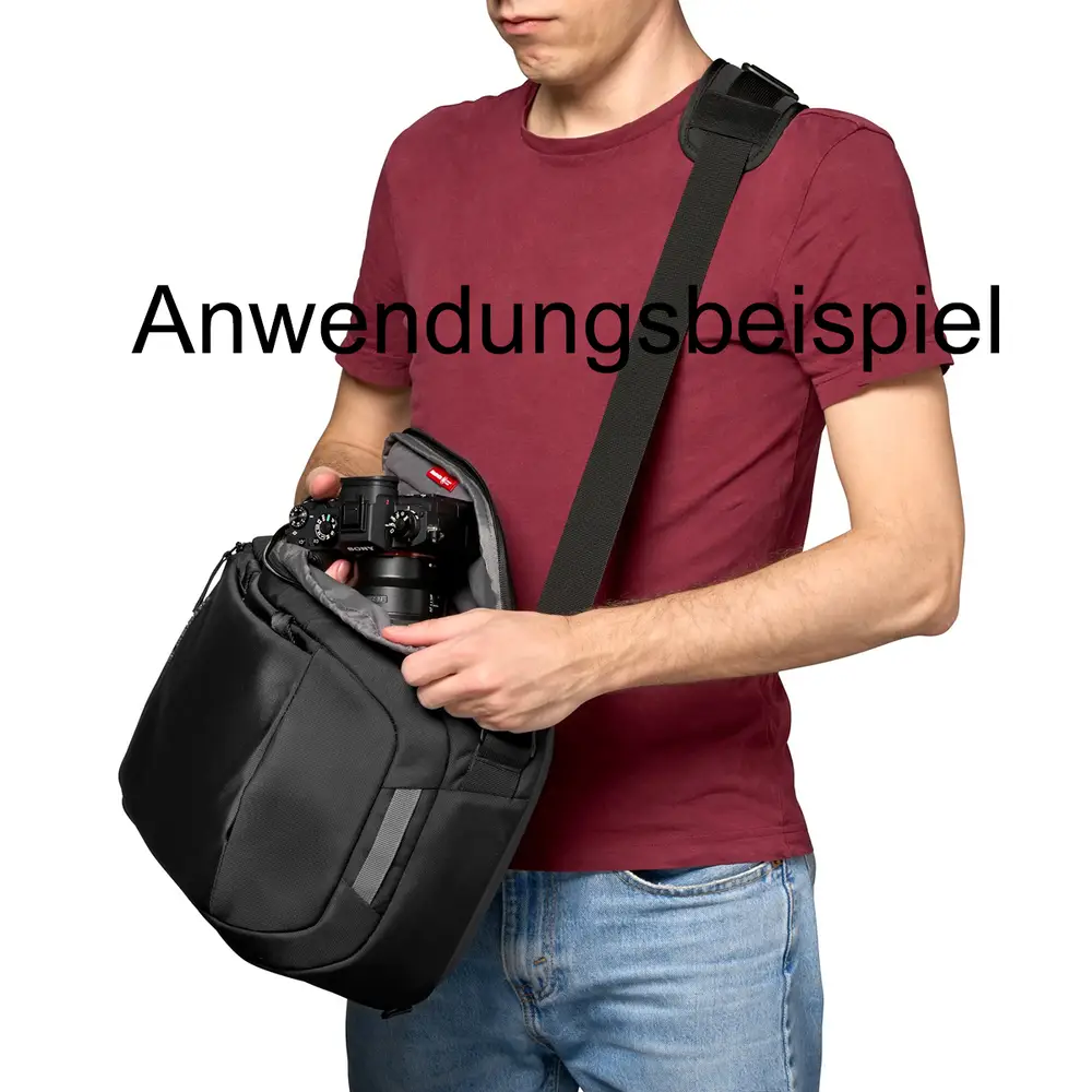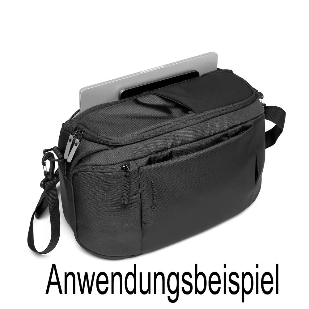 Alltagstauglicher Kamera- und Laptop-Rucksack für Fotoausrüstung und persönliche Dinge. Der Rucksack Advanced 3 von Manfrotto ist für spiegellose CSC-Kameras, plus Laptop ausgelegt. Das Modell Hybrid verfügt über einen separaten Stauraum für persönliche Dinge im oberen und für die Fotoausrüstung im unteren Fach, wobei die Fächer direkt und schnell über die Fronttasche zugänglich sind. Der großzügige Innenraum reicht für eine DSLR, spiegellose CSC Kamera und bis zu zwei mittelgroßen Objektiven und Laptop