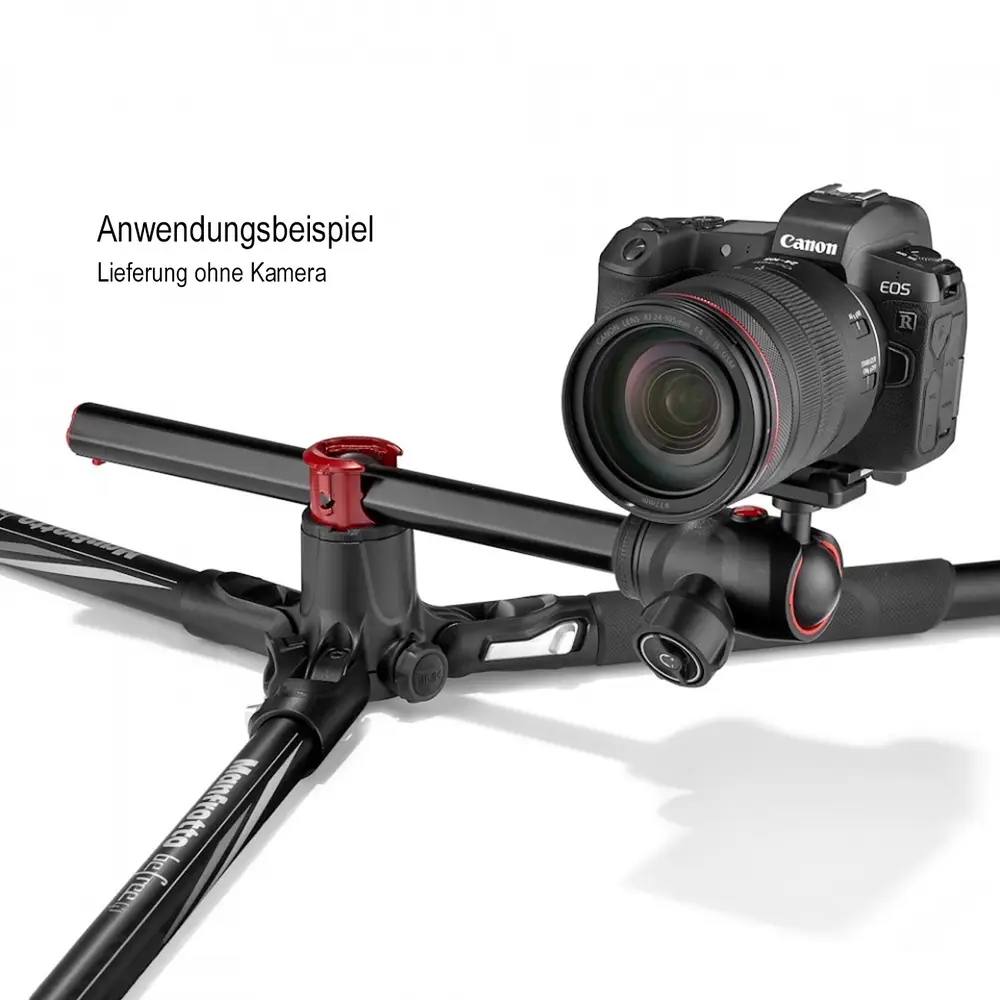 Das Stativ ist mit dem Manfrotto 496 Kugelkopf ausgestattet, einem leistungsstarken Kopf, der eine Traglast von bis zu 10 kg aufnimmt und eine unabhängige Panorama- und Friktionskontrolle für volle Bewegungskontrolle besitzt. Zudem ist im Lieferumfang eine 200PL-PRO Schnellwechselplatte, die sowohl RC2- als auch Arca-Swiss kompatibel ist, enthalten. Das Drehverschluss-System M-Lock unterstreicht die einfache Bedienbarkeit und ermöglicht einen mühelosen und schnellen Aufbau. Ein Easy-Link Anschluss mit 3/8-Zoll-Innengewinde sowie ein Beschwerungshaken an der Stativschulter gehören ebenso zur Ausstattung des Stativs.