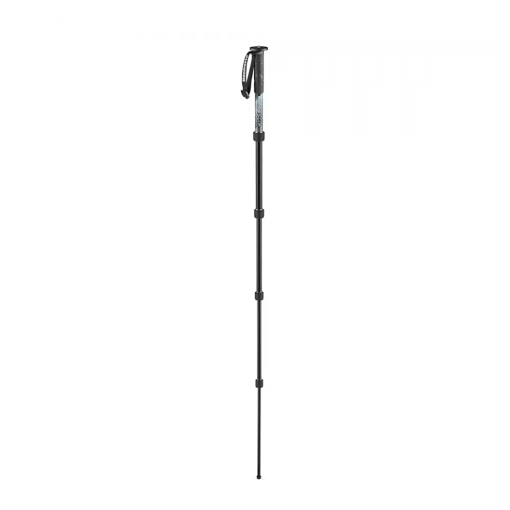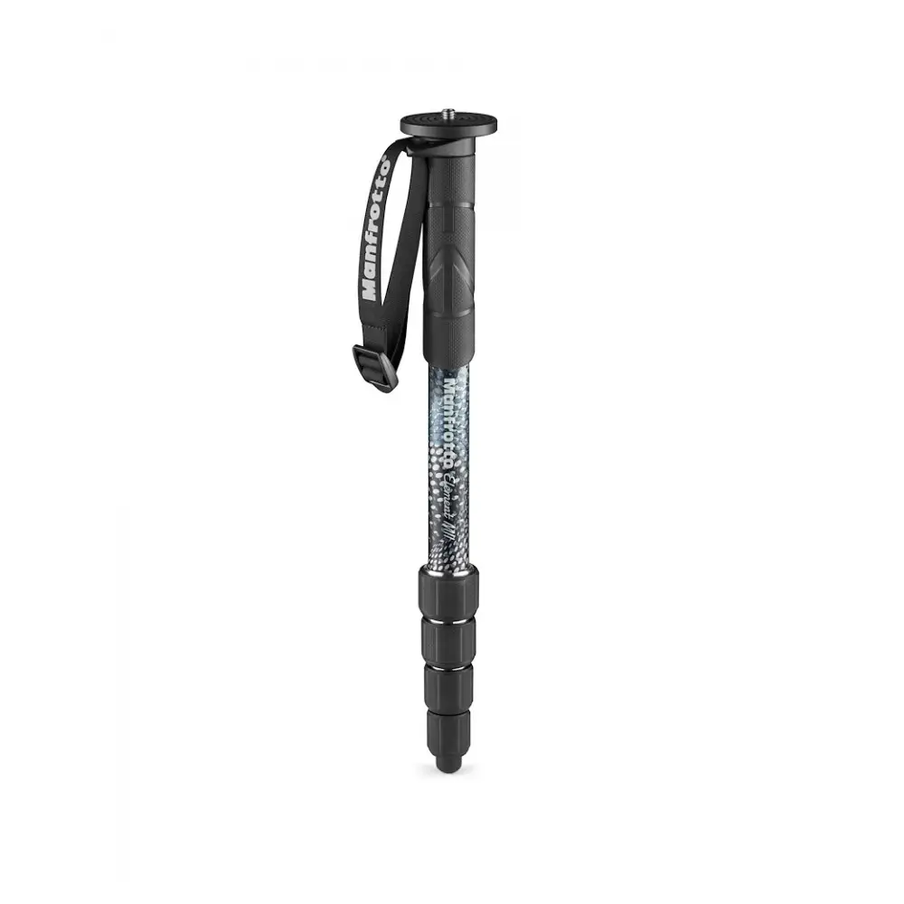 Die umkehrbare Schraube oben auf der Scheibe beinhaltet ein 1/4- und ein 3/8-Zoll-Gewinde zur direkten Befestigung einer Kamera oder für eine optionale Manfrotto-Kopfhalterung. Mit der beliebten Drehverriegelung ist das Einbeinstativ im Handumdrehen aufgestellt, ohne die Augen vom Motiv nehmen zu müssen. Dieser ergonomische Mechanismus macht das Einbeinstativ schnell und handlich in der Bedienung – beides Kernmerkmale des idealen Einbeinstativs. Es kann in verschiedenen Höhen bis maximal 159 cm verwendet werden. Dieses Einbeinstativ ist nur 43 cm lang, wenn jedes Segment vollständig zusammengeklappt ist, und wiegt nur 0,5 kg, was ideal für Transport und Reise ist.