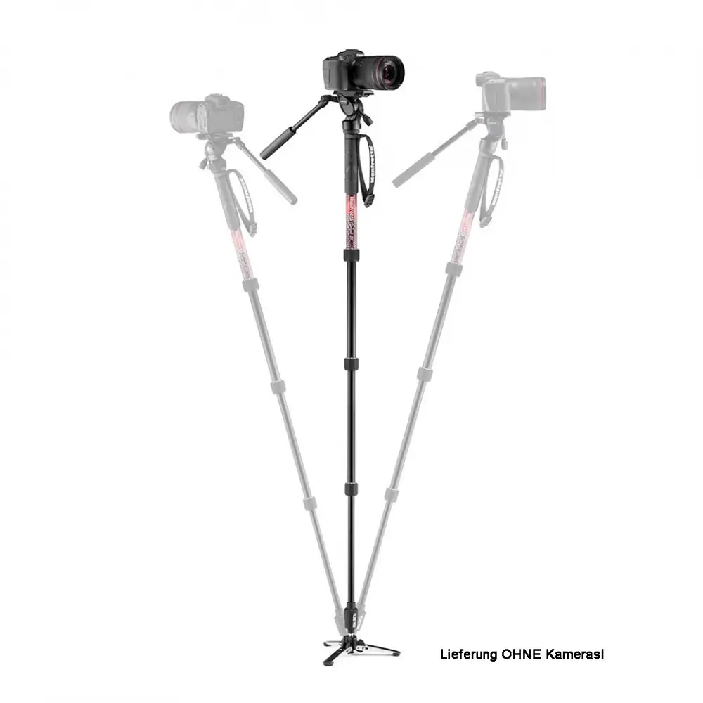 Hauptmerkmale• Brillante Aufnahmequalität, besonders leicht und stabil• Kann bis zu 4 kg tragen, wiegt nur 1 kg• Komplett klappbarer Kopf und Füße für maximalen Tragekomfort• Patentierte Fluidbasis für ruckelfreies Schwenken• Twist-Locks sorgen für einfachen Aufbau und extreme KompaktheitKompakt, leicht und absolut geschmeidig kombiniert es anspruchsvolle Leistungsfähigkeit mit Einfachheit in der Anwendung. Er lässt sich schnell und einfach zusammenklappen und wegpacken und ist perfekt für CSC- und DSLR-Kameras geeignet.Das ELEMENT MII Video-Einbeinstativ-Kit enthält einen nicht abnehmbaren, kompakten Fluid-Videokopf, der dank des Manfrotto Fluid Drag Systems eine ultra-glatte und einwandfreie Neigung ermöglicht.Er ist überaus leicht und stabil und kann bis zu 4 kg tragen. Das ELEMENT MII Video-Einbeinstativ-Kit wurde für maximale Transportfähigkeit entwickelt, mit einer abnehmbaren, zusammenklappbaren Schwenkstange und vollständig klappbaren, extraleichten Kopf- und Standfüßen.Das gesamte Kit wiegt nur 1 kg und lässt sich auf eine kompakte Länge von 60 cm einklappen. Es lässt sich im Handumdrehen zusammenklappen, einpacken und überallhin mitnehmen. Dieses Kit bietet wirklich eine erstklassige Stabilität, die perfekt für unterwegs ist.Das Element MII Video-Einbeinstativ verfügt über hochleistungsfähige, ergonomische Drehverschlüsse. Diese machen das Aufstellen und Einstellen viel einfacher und komfortabler und bieten gleichzeitig maximalen Halt, schnelle Beinöffnung und extreme Kompaktheit. Der VerriegelungsmechanismusDas Element MII Video-Einbeinstativ hat auch eine unglaublich sanfte Schwenkbewegung, dank der patentierten, leichten Fluid-Patrone in der Basis. Dank der ruckelfreien Basiskugel kann die Neigeposition auch auf den unebensten Oberflächen erreicht werden, so dass Anwender die Vorteile des flüssigen Schwenks unter allen möglichen Bedingungen nutzen können.Das leichte Aluminiumgehäuse des Element MII Video-Einbeinstativs macht es einfach zu transportieren, und das haltbare Design bedeutet, dass es absolut stabil bleibt, wenn die Segmente vollständig geöffnet sind.Wie alle Manfrotto Produkte wird auch das Element MII Fluid Video Monopod Kit nach den höchsten Qualitäts- und Designstandards gefertigt. Neben seiner Fülle an leistungsstarken Funktionen hebt es sich durch seine schöne Optik und die auffällige rote Grafik an den Beinen von der Masse ab.