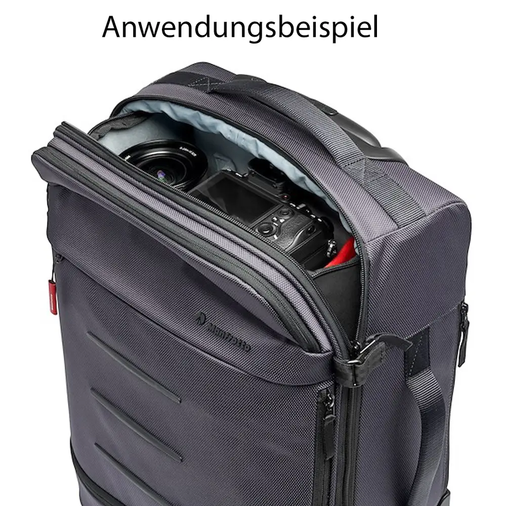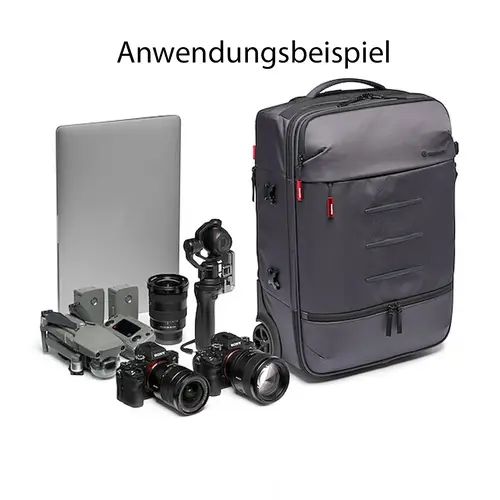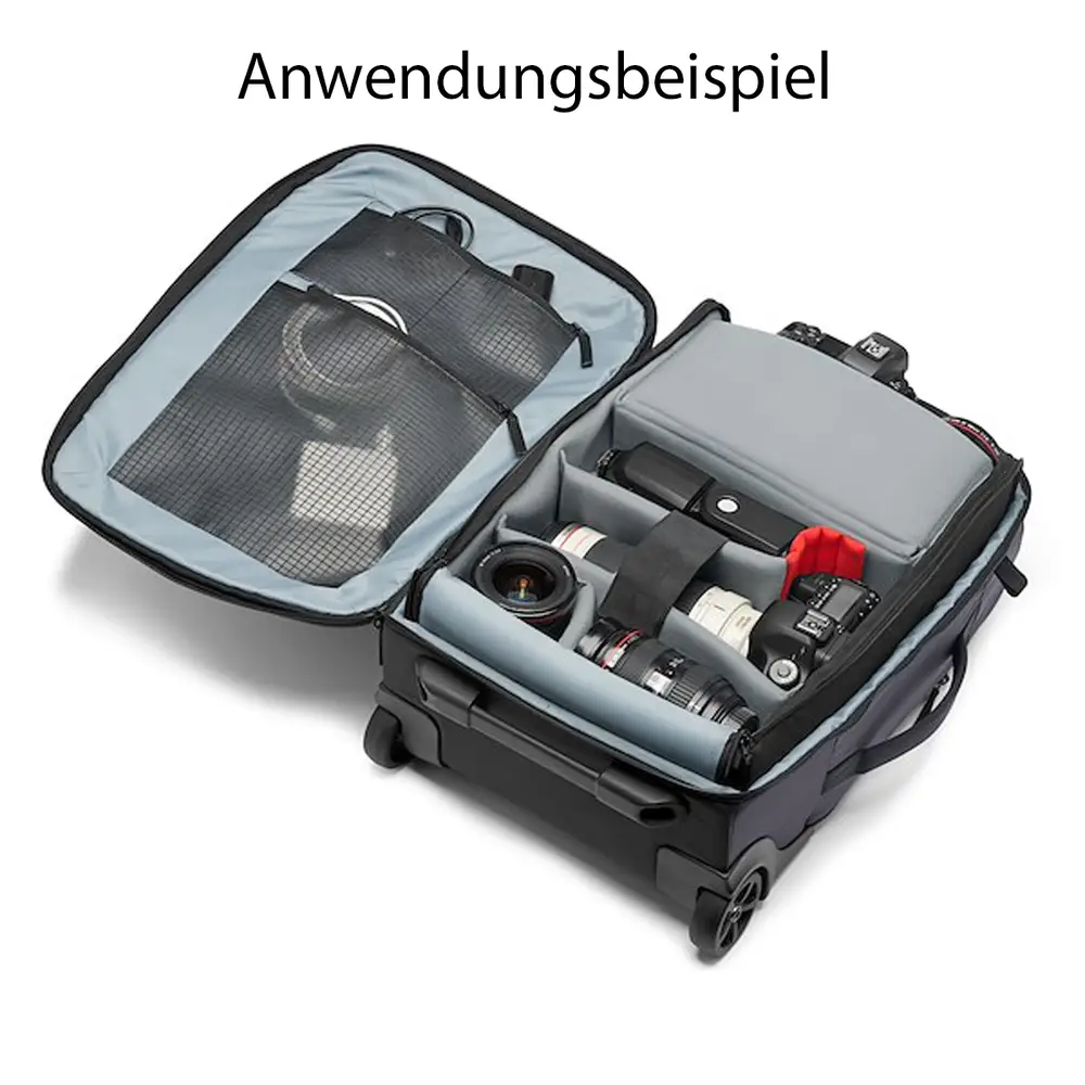 Außerdem verfügt das extrem funktionale Kamera-Case über das innovative Schutzsystem Flexy Camera Shell von Manfrotto. In diesen Trolley passen nicht nur eine DSLR-Kamera samt aufgesetztem 70/200-mm-Objektiv, ein zweites DSLR-Gehäuse und drei bis vier weitere Objektive, sie nimmt außerdem spielend eine Premium-CSC-Kamera mit weiteren Objektiven und ein DJI Mavic Pro 2 Combo-Kit auf.