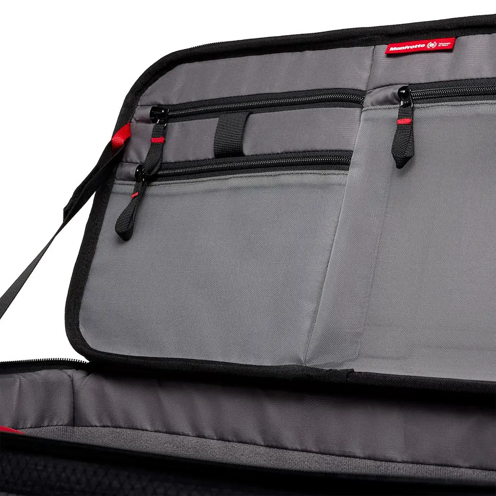 Die Medium Pro Light Cineloader, die hinsichtlich der Abmessungen und des Platzangebots am vielseitigsten ist, ist die ideale Wahl für Ein-Mann-Videofilmer oder Filmcrews, die viel Ausrüstung zum Set transportieren müssen. Diese für 15 kg Nutzlast getestete Tasche ist so konzipiert, dass ein vollständig ausgerüsteter Camcorder plus Zubehör perfekt hineinpasst.