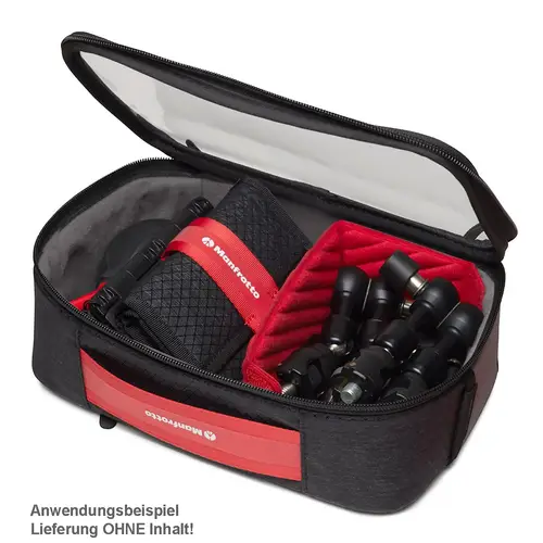 Vielseitigkeit ist der Schlüssel - unsere Tasche ist mit den meisten Manfrotto Pro-Light-Taschen und anderen Manfrotto-Produkten kompatibel. Das durchdachte Design enthält einen geräumigen oberen Stoffgriff, der ein einfaches Wiederauffinden ermöglicht, ohne unnötigen Platz in Ihrer Tasche zu beanspruchen. Mit den beiden Schlaufen auf der Rückseite können Sie die Tasche mühelos an den Gurtbandschlaufen des Manfrotto Cineloader aufhängen.