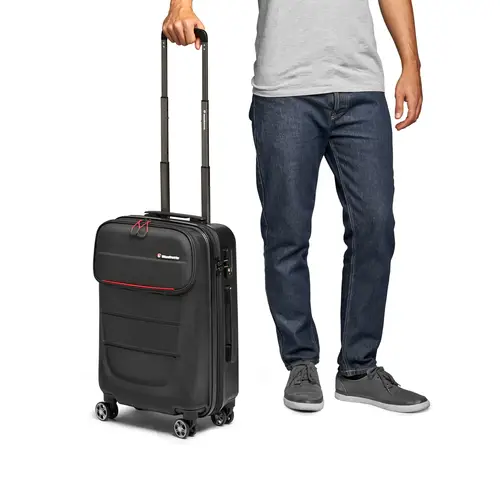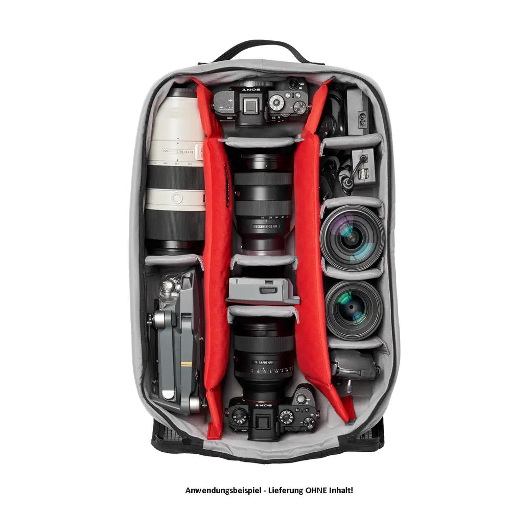 Hauptmerkmale:• Kann als Foto-Trolley oder auch als Reisekoffer genutzt werden• Außenmaterial Polycarbonat sorgt für geringes Gewicht und Stabilität• 4 Doppelrollen für leichteren Transport• Schneller Zugriff von vorne auf das Innenfach• Entspricht den Größenanforderungen an Handgepäck internationaler FluggesellschaftenDer Pro Light Trolley Spin-55 bezieht seine außergewöhnliche Stabilität und Robustheit aus einer Polycarbonat-Außenhülle in Kombination mit einer innenliegenden EVA-Schale. Diese maximiert zugleich die Kapazität des Rollkoffers, minimiert dessen Gewicht und bietet optimalen Schutz vor Stößen. Dank vier Doppel-Rollen lässt sich der Pro Light Trolley Spin-55 auf engstem Raum manövrieren und erleichtert professionellen Fotografen und Videografen so den Transport schwerer Ausrüstung.Der 55 x 35,5 x 22 cm messende Trolley Spin-55 kann folgende Fotoequipment-Elemente aufnehmen: eine professionelle DSLR mit angesetztem 70-200mm Objektiv, ein zweites DSLR-Gehäuse plus bis zu vier Objektive, eine Premium-DSLM mit zusätzlichen Objektiven sowie ein DJI Mavic Pro Combo Kit. Der Zugriff auf die Fotoausrüstung ist von zwei Seiten aus möglich. Ein 15"-Laptop lässt sich in einer schnell zugänglichen Fronttasche verstauen. Die 12 gepolsterten sowie 2 Manfrotto Kameraschutz-Trennwände sichern das Equipment im Kofferinneren vor Stößen. Die Inneneinteilungen lassen sich schnell und individuell an die jeweilige Ausrüstung anpassen. Darüber hinaus verfügt der Spin-55 über eine abnehmbare Stativhalterung an der Außenseite.Die interne Kameraschutzeinheit kann mühelos entfernt werden, wodurch sich der Trolley im Handumdrehen in einen Reisekoffer verwandeln lässt. In diesem Fall stehen im Inneren elastische Querbänder zur Verfügung, mit denen sich persönliche Gegenstände gegen ungewollte Bewegungen sichern lassen. Der Trolley wird durch ein festes TSA-Schloss mit 3-stelliger Zahlenkombination gesichert.Spezifikationen:CSC Kamera Modelle• Canon EOS M10; Canon EOS M100; Canon EOS M3; Canon EOS M5; Canon EOS M6; • Fujifilm X-A2; Fujifilm X-A3; Fujifilm X-A10; Fujifilm X-E2S; Fujifilm X-E3; Fujifilm X-Pro2; Fujifilm X-T1; Fujifilm X-T1 IR; Fujifilm X-T10; Fujifilm X-T2; Fujifilm X-T20; • Leica TL; Leica TL5; • Nikon 1 J4; Nikon 1 J5; Nikon 1 S2; Nikon 1 V3; • Olympus OM-D E-M1 II; Olympus OM-D E-M10; Olympus OM-D E-M10 II; Olympus OM-D E-M10 III; Olympus OM-D E-M5 II; Olympus PEN E-PL7; Olympus PEN E-PL8; Olympus PEN-F; • Panasonic Lumix DMC-G7; Panasonic Lumix DMC-G85; Panasonic Lumix DMC-GF7; Panasonic Lumix DMC-GF8; Panasonic Lumix DMC-GF9; Panasonic Lumix DMC-GH4; Panasonic Lumix DMC-GH5; Panasonic Lumix DMC-GM5; Panasonic Lumix DMC-GX7 Mark II; Panasonic Lumix DMC-GX8; Panasonic Lumix DMC-GX80; Panasonic Lumix DMC-GX85; Panasonic Lumix DMC-GX800; Panasonic Lumix DMC-GX850; • Sony Alpha 7 II; Sony Alpha 7R II; Sony Alpha 7S; Sony Alpha 7S II; Sony Alpha 9; Sony Alpha a5000; Sony Alpha a5100; Sony Alpha a6000; Sony Alpha a6300; Sony Alpha a6500; Sony A7R III; Yi M1Material: Polycarbonate PC; RipStop; SynthetikfaserAnzahl Objektive: 8Platz für Persönliches: JaStativhalterung: JaTaschenart: RollerAusrüstung: Profi-Drohne; DSLR; SpiegelloseAußenmaß (LxBxH): 35,5 x 22 x 55 cmInnenmaß (LxBxH): 32 x 16 x 46 cmLaptop bis Größe (LxBxH): 31 x 3 x 44 cmKompatible Drohnen Modelle • DJI Mavic Pro; DJI Mavic Pro Platinum; DJI Mavic Air; DJI Mavic 2 Pro; DJI Mavic 2 ZoomLeergewicht: 2,8 kgFarbe: Schwarz