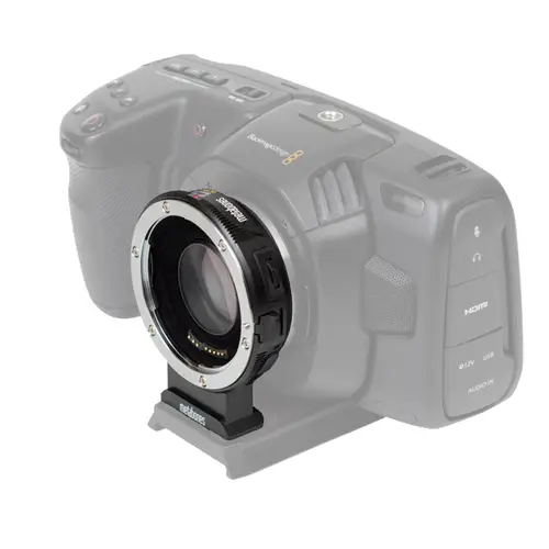 Produktmerkmale Optisch • Canon EF-Objektiv für Blackmagic Design Kameras mit M43-Halterung, speziell für BMPCC4K • erhöhen Sie die maximale Blende um 1 Blendenstufe (mit einer maximalen Ausgangsöffnung von f/0,9) MTF erhöhen • verlängert die Brennweite um Faktort 0,71x, patentiertes optisches 6-Element-/4-Gruppen-Design Elektronische • die Blende des Objektivs wird über die Bedienelemente am Kameragehäuse eingestellt • glatte Irisunterstützung mit den neuesten Objektivmodellen Canon (2009+), Tamron (SP-Serie 2013+) und Sigma (2016+) • Bildstabilisierungs-(IS)-Objektivträger • Autofokus, wenn er von der Kamera unterstützt wird • Cinema EOS Objektivunterstützung (CN-E 18-80mm T4.4 L), inklusive AF (benötigt externe 5V Stromversorgung über Mikro-USB-Anschluss), Autoiris und Servozoom Stromversorgung durch das Kameragehäuse • bei den meisten Objektiven ist keine externe Stromquelle erforderlich Mechanisch Beflockung zur Reduzierung der inneren Reflexion die Gummidichtung schützt die M43-Montageverbindung vor Staub und Feuchtigkeit Konstruktion aus Aluminiumlegierung und Messing mit Verchromung, satinierte Oberfläche kompatible Kameras • BlackMagic Pocket Cinema Camera 4K • BlackMagic Pocket Cinema Camera HD (original ver.) • BlackMagic Micro Cinema Camera • BlackMagic Micro Studio Camera 4K • BlackMagic Studio Camera 4K • BlackMagic Studio Camera kompatible Objektive • Canon EF100-400mm f/4.5-5.6L IS II USM • Canon EF100-400mm f/4.5-5.6L IS USM (I) • Canon EF100mm f/2.8L IS USM Macro* • Canon EF135mm f/2L USM • Canon EF16-35mm f/2.8L II USM* • Canon EF17-35mm f/2.8L USM • Canon EF17-40mm f/4L USM • Canon EF200mm f/2.8L II USM • Canon EF24-105mm f/4L IS USM (I) • Canon EF24-70mm f/2.8L II USM* • Canon EF28-135mm f/3.5-5.6 IS USM • Canon EF28-70mm f/3.5-4.5 II • Canon EF28-80mm f/3.5-5.6 III USM • Canon EF300mm f/2.8L IS II USM* • Canon EF300mm f/4L IS USM • Canon EF400mm f/5.6L USM • Canon EF40mm f/2.8 STM* • Canon EF50mm f/1.2L USM • Canon EF50mm f/1.4 USM • Canon EF50mm f/1.8 II • Canon EF50mm f/1.8 STM* • Canon EF70-200mm f/2.8L IS II USM* • Canon EF70-200mm f/4L IS II USM* • Canon EF70-200mm f/4L USM • Canon EF70-300mm f/4-5.6L IS USM • Canon EF8-15mm f/4L USM Fisheye* • Canon EF85mm f/1.2L II USM • Sigma 135mm f/1.8 DG HSM Art 017* • Sigma 18-35mm f/1.8 DC HSM Art 013 • Sigma 24-105mm f/4 DG HSM Art 013 • Sigma 24-35mm f/2 DG HSM Art 015 • Sigma 30mm f/1.4 DC HSM Art 013 • Sigma 35mm f/1.4 DG HSM Art 012* • Sigma 50-500mm f/4.5-6.3 DG OS HSM • Sigma 50mm f/1.4 DG HSM (not Art) • Tamron 10-24mm f/3.5-4.5 VC HLD B023 • Tamron 18-250mm f/3.5-6.3 A18 • Tamron 18-270mm f/3.5-6.3 B003 • Tamron 24-70mm f/2.8 VC USD A007 (G1) • Tamron 28-300mm f/3.5-6.3 A06 • Tamron 35-150mm f/2.8-4 VC OSD A043 • Tamron 70-200mm F/2.8 Di VC USD A009 • Tokina 11-16mm f/2.8 AT-X PRO (I) • Zeiss 18mm f/3.5 ZE • Canon EF-Extender (Teleconverter) * = Irisunterstützung