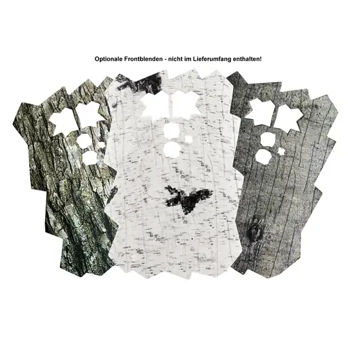 • Eine Frontblende mit grober Baumrindenstruktur im Lieferumfang.