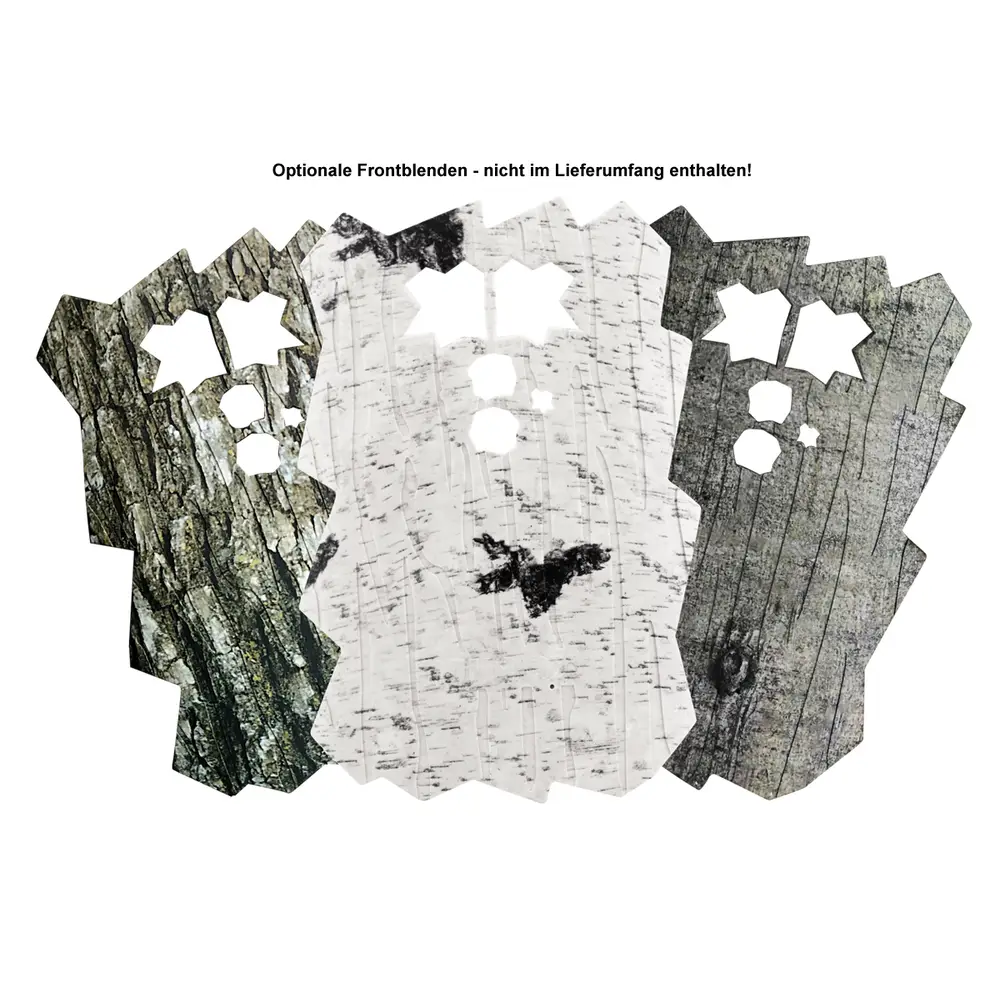 Dank praktischer Stangenmagazine sind die Batterien ganz einfach zu wechseln – selbst mit klammen Fingern bei kalten und nassen Temperaturen. Optional lassen sich die Frontblenden einfach austauschen, so dass der Tarnprofi an seine Umgebung angepasst werden kann.