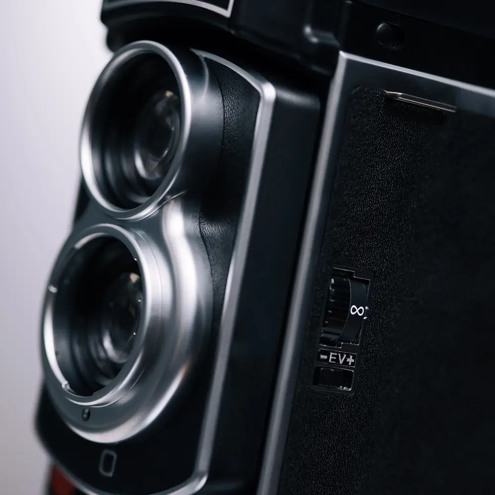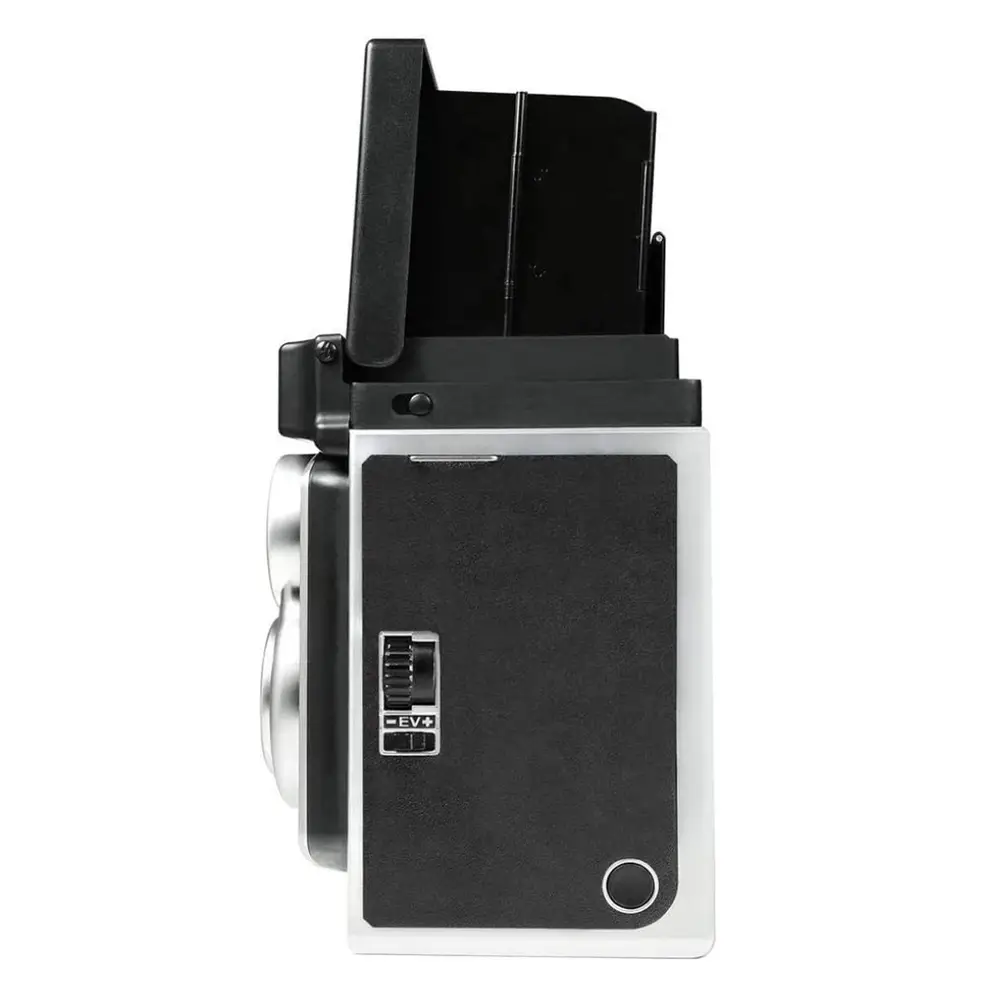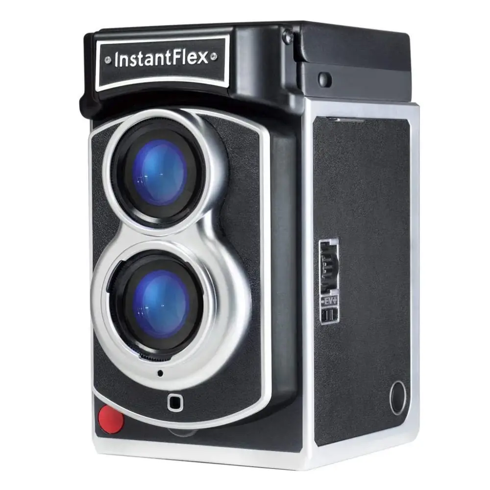 • Sofortbildkamera im klassischen Stil mit Doppel-Objektiv-Reflex-Design.