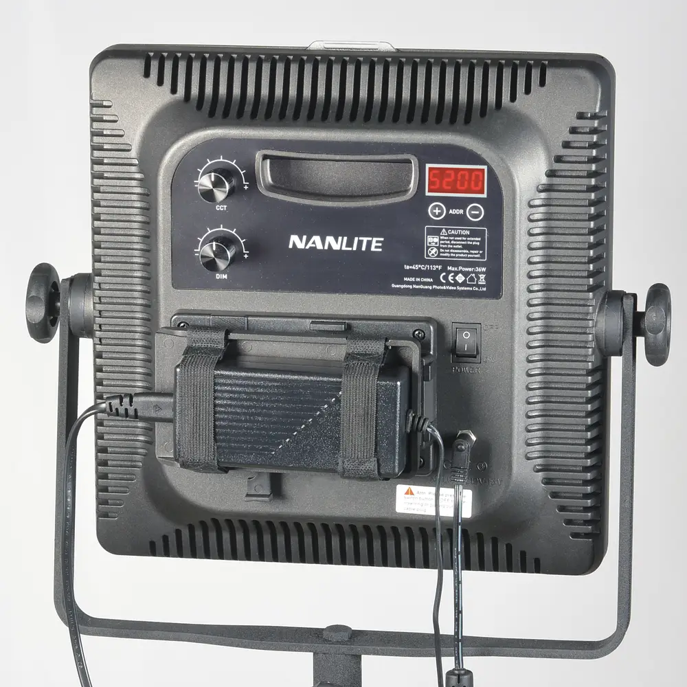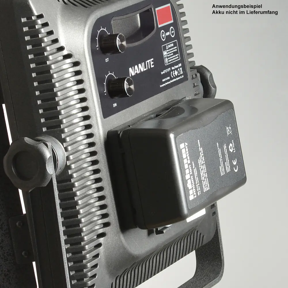 Für den mobilen Einsatz lässt sich die Leuchte auch mit einem V-Mount-Akku (nicht im Lieferumfang) betreiben.