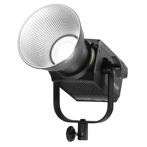 Zur gleichmäßigen, enorm hellen Ausleuchtung (mit Standardreflektor 29490 Lux in 1 m Entfernung bei 5600 Kelvin) mit sehr hoher Farbwiedergabequalität und für die Erzielung besonderer, individuell anpassbarer Beleuchtungseffekte. Dimmbar. Bedienung direkt an der Leuchte oder Fernsteuerung über Bluetooth oder Funk. Netzbetrieb.