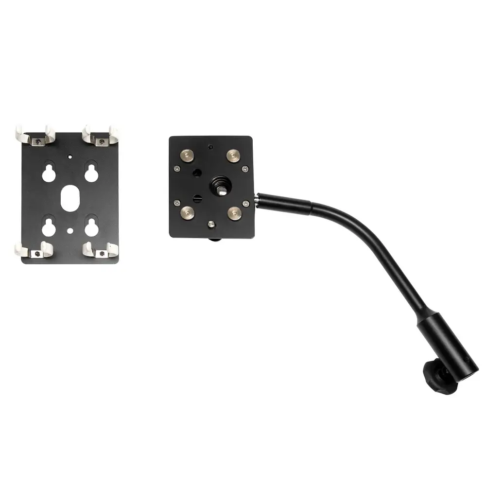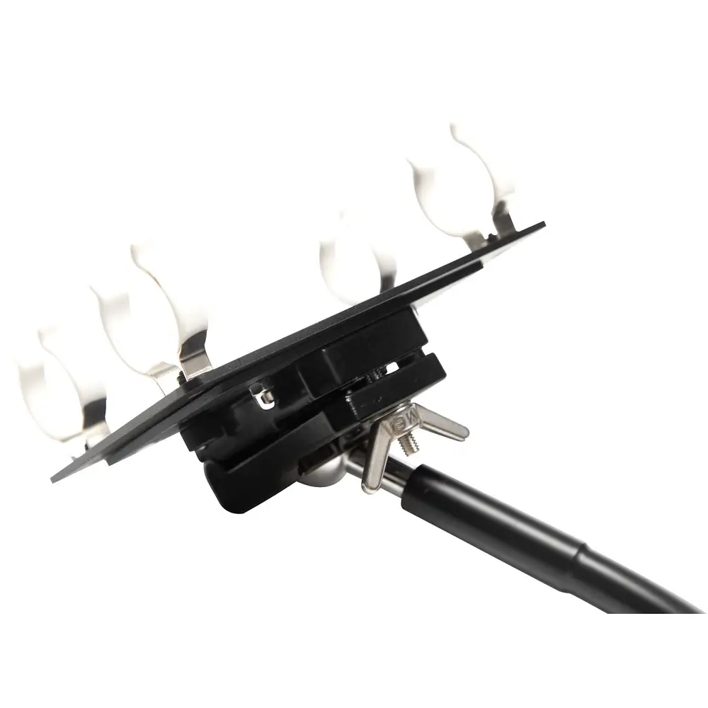 Mit gebogenem Haltearm und robustem Kugelgelenk sowie abnehmbarer Leuchten-Halteplatte. Halteklammern für die Leuchten mit rutschhemmender, oberflächenschonender Beschichtung.