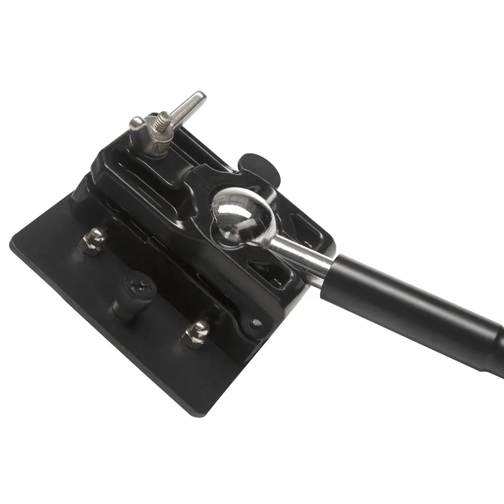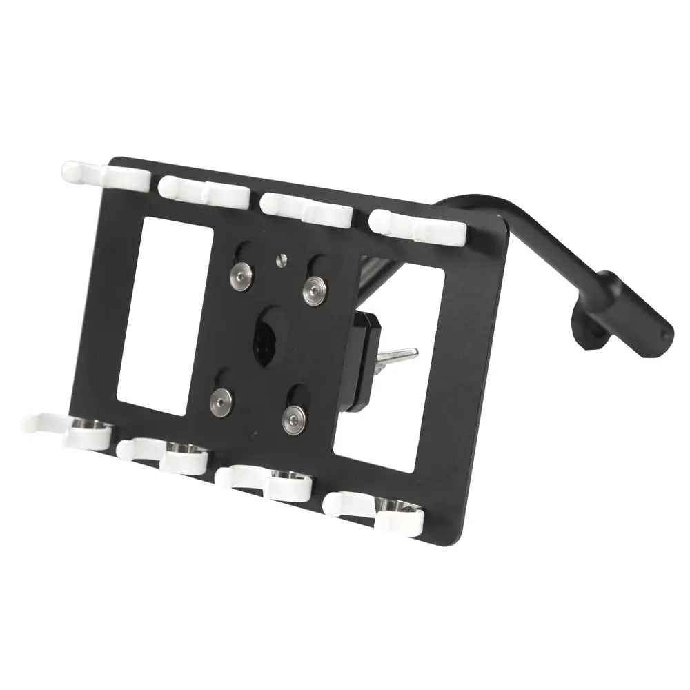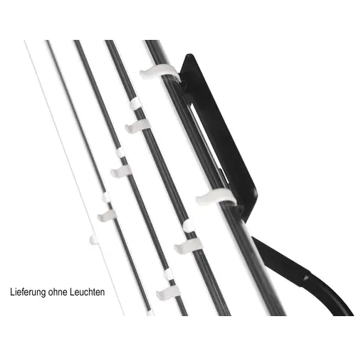 Mit gebogenem Haltearm und robustem Kugelgelenk sowie abnehmbarer Leuchten-Halteplatte. Halteklammern für die Leuchten mit rutschhemmender, oberflächenschonender Beschichtung.